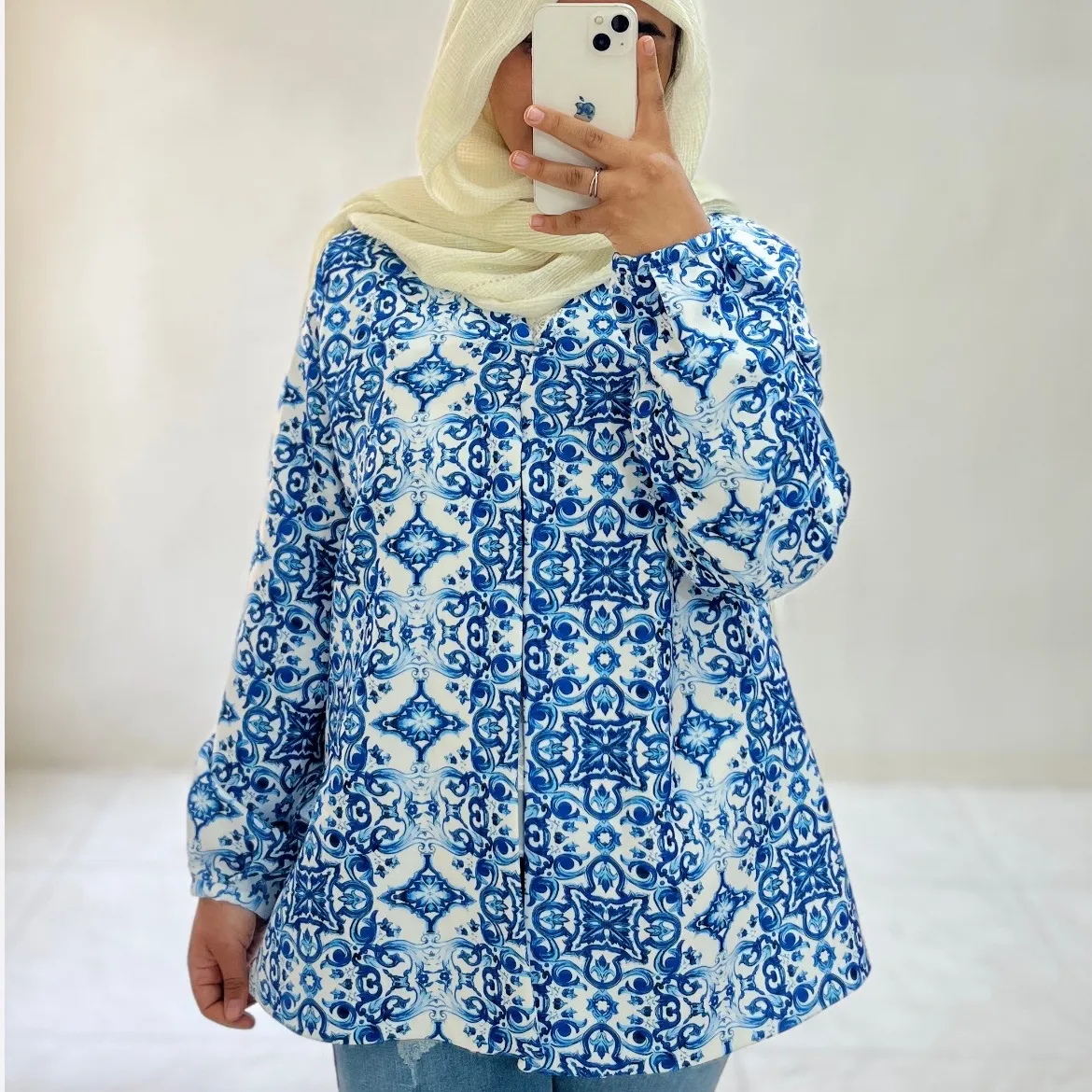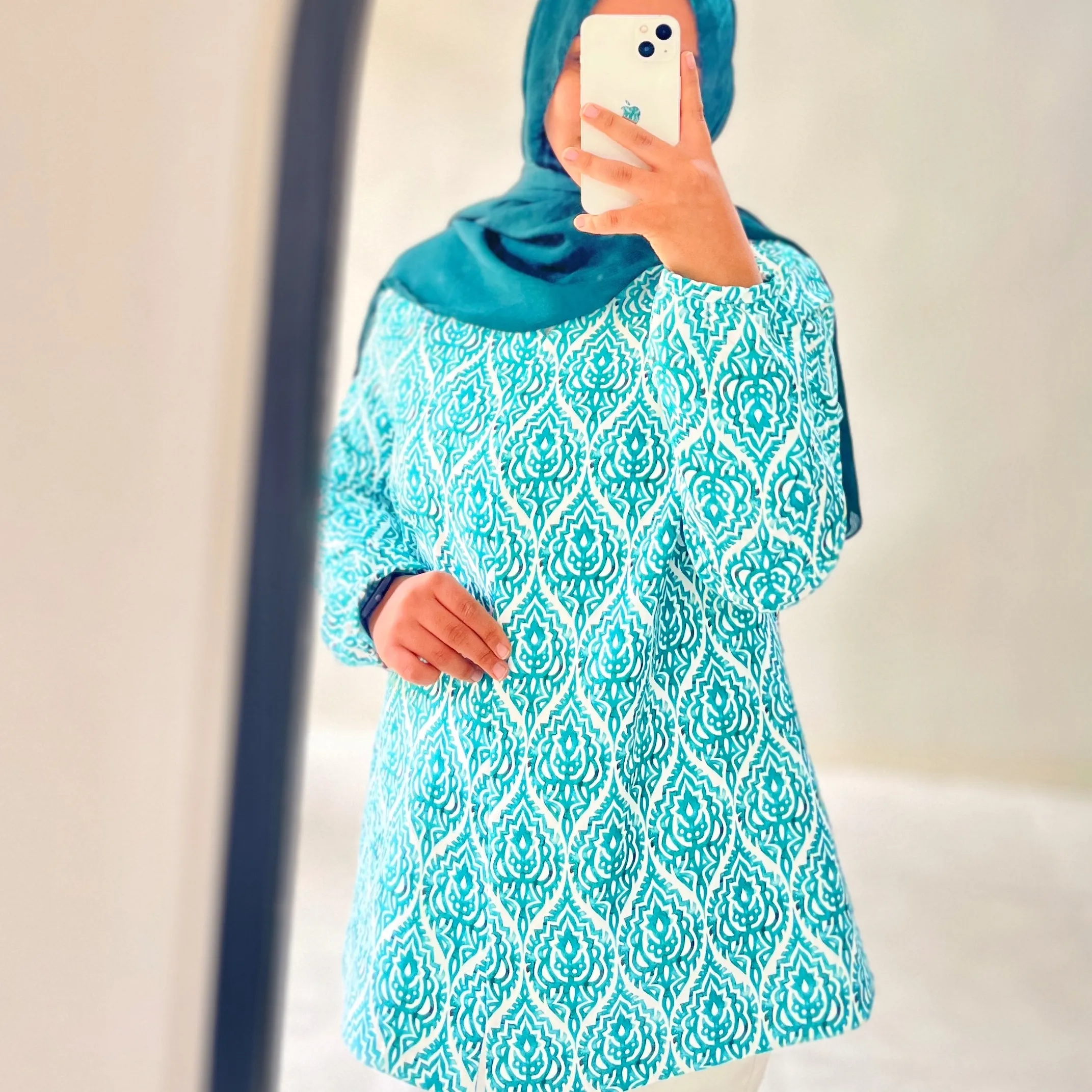مانتو کتی آبی شانتون گازوییلی زنانه شیک و کاربردی مناسب بهار و تابستان