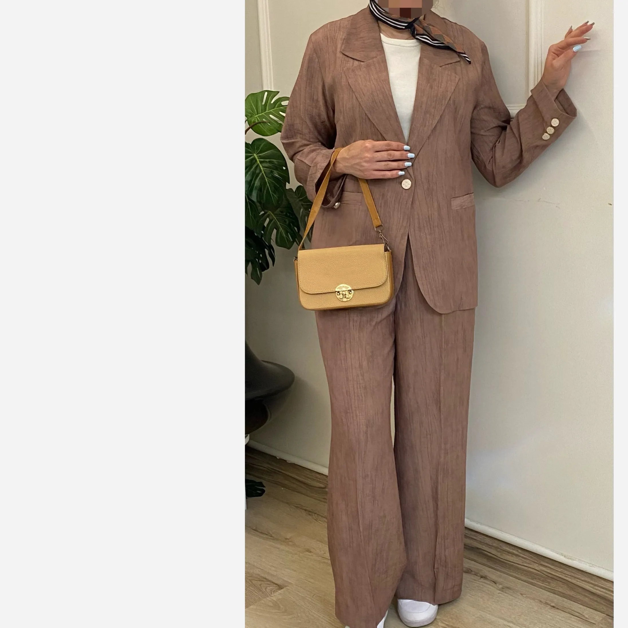 کت و شلوار زنانه شانتون گازوئیلی قهوه ای موکا آستر دوزی شده سایز 38 تا 42