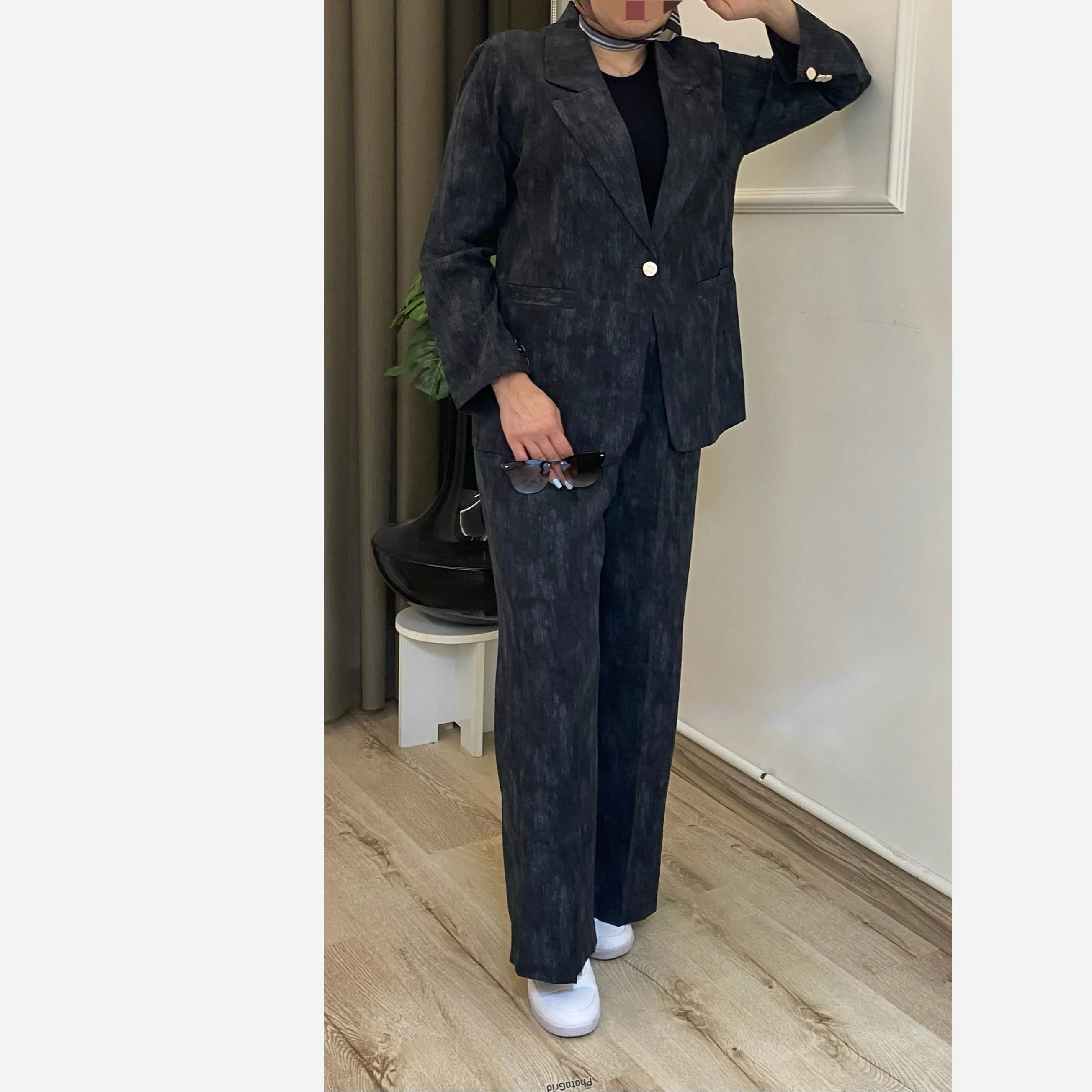 کت و شلوار زنانه شانتون گازوئیلی مشکی آستردار سایز 38 تا 42