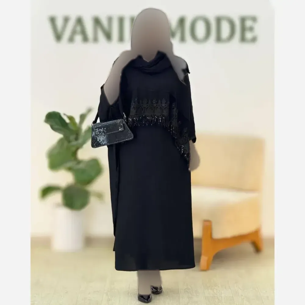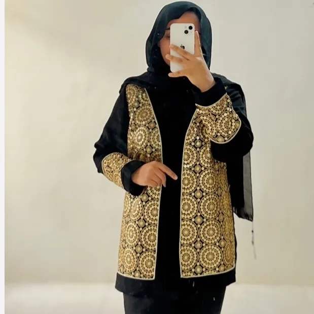 مانتو مدل نجلا ابر و بادی فری سایز مشکی خرج کار طلایی و مشکی قد 110