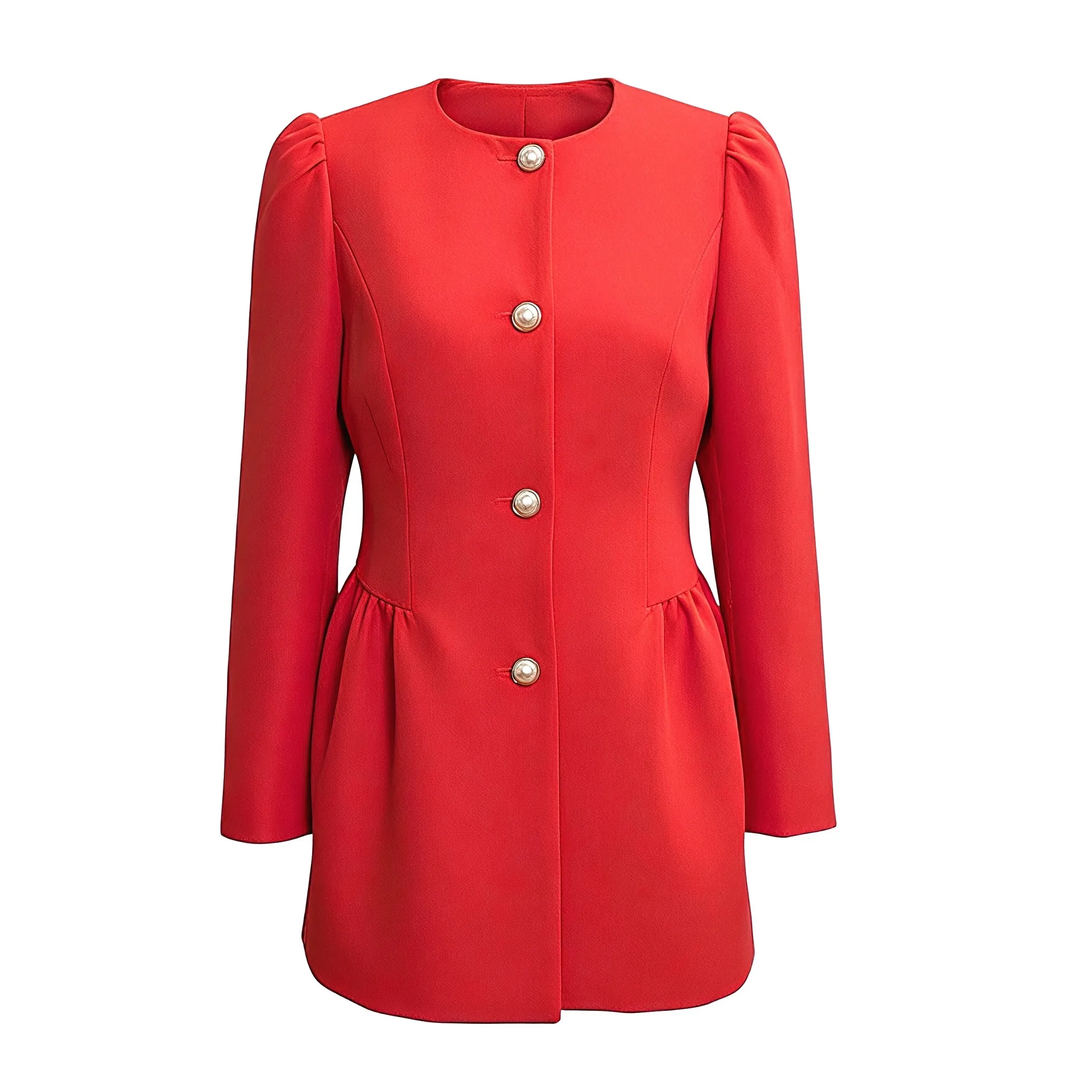مانتو کرپ کجراه زنانه مدل یقه گرد آستین پفی رنگ هندوانه ای چهار فصل