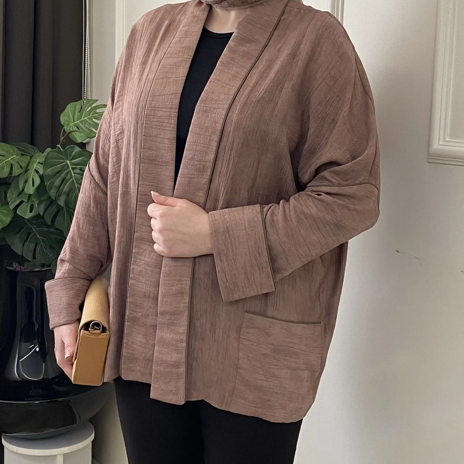 مانتو قهوه ای موکا آستین کیمانو شانتون گازوییلی خنک زنانه سایز 40 تا 46