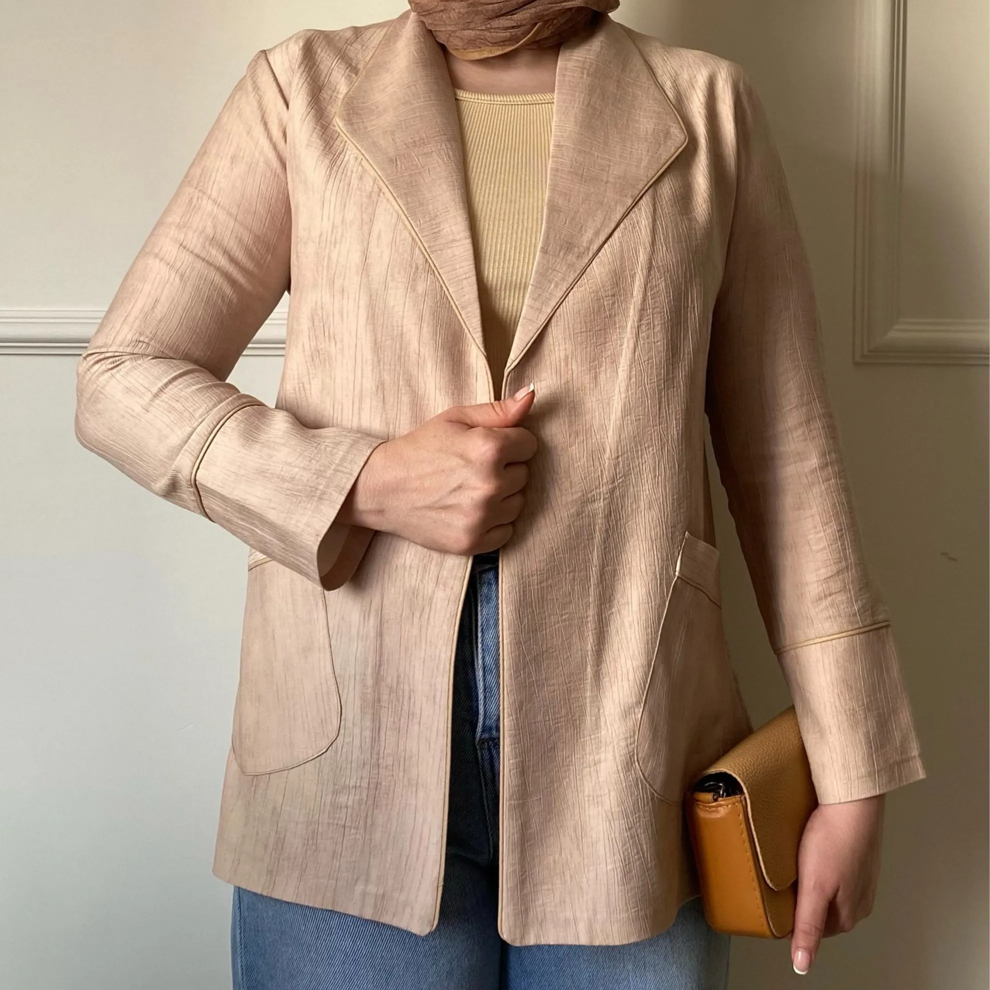 کت زنانه شانتون گازوییلی کرم آستردار شیک مناسب سایز 38 تا 42
