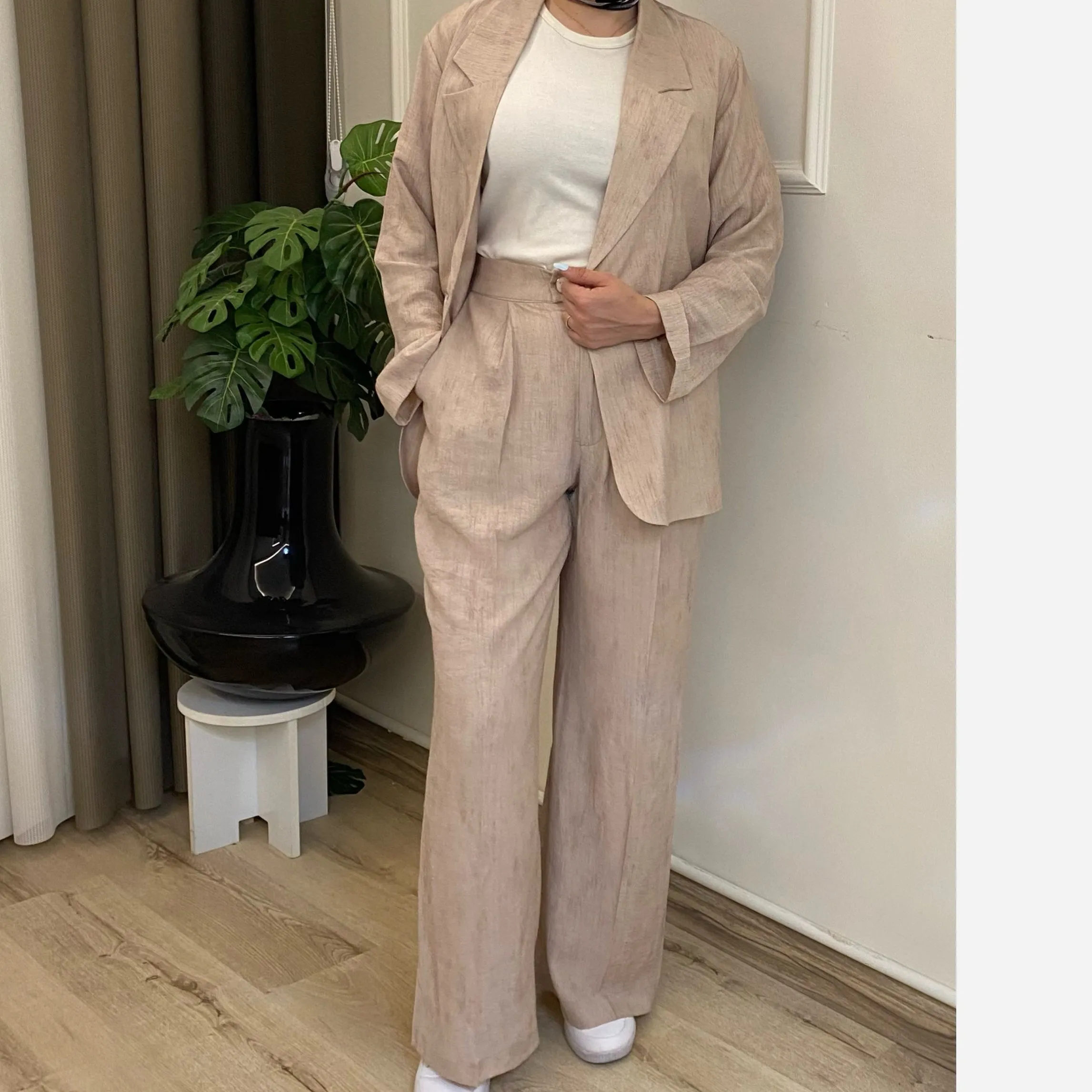 کت و شلوار شانتون گازوئیلی کرم زنانه شیک آستردار سایز 38 تا 42