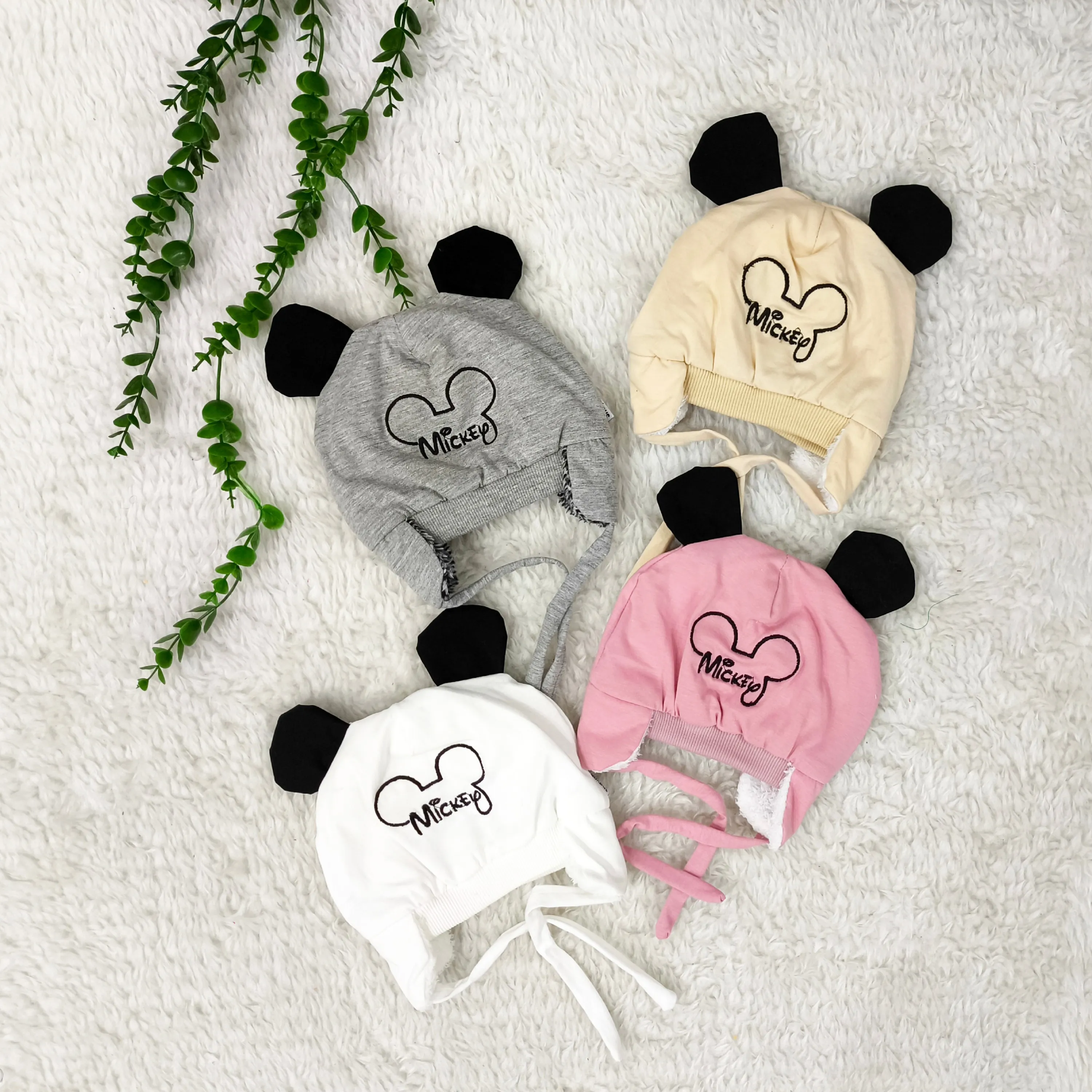 کلاه نوزادی میکی موس پوم دار خزدار مناسب 3 ماه تا 1 سال | پاییز و زمستان