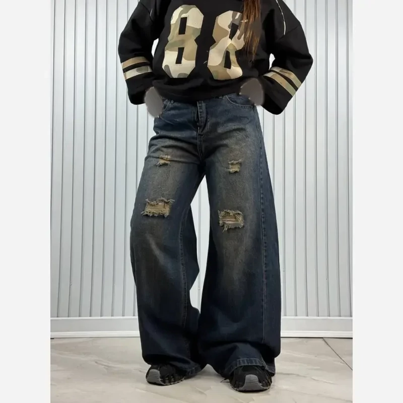 **شلوار جین زنانه بگ زاپدار قد بلند طرح دار کمر کشی: استایلی راحت و به روز**