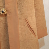 این مانتو کتی زنانه با طراحی شیک و خاص، انتخابی ایده آل برای بانوان خوش پوش است. جنس پارچه این مانتو از ژاکارد چروک دوبل با کیفیت بالا است که علاوه بر زیبایی، دوام و راحتی را نیز به ارمغان می آورد. رنگ کرم این مانتو، ظاهری لوکس و چشم نواز به آن بخشیده و خرج کار طلایی، جلوه ای منحصر به فرد و خیره کننده به آن اضافه کرده است.
