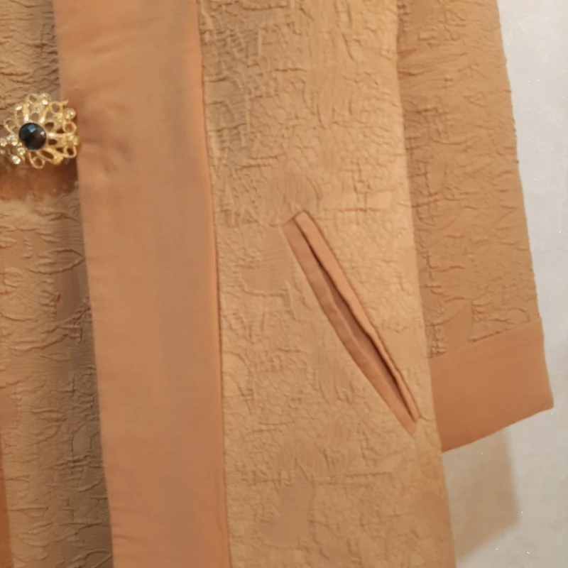 این مانتو کتی زنانه با طراحی شیک و خاص، انتخابی ایده آل برای بانوان خوش پوش است. جنس پارچه این مانتو از ژاکارد چروک دوبل با کیفیت بالا است که علاوه بر زیبایی، دوام و راحتی را نیز به ارمغان می آورد. رنگ کرم این مانتو، ظاهری لوکس و چشم نواز به آن بخشیده و خرج کار طلایی، جلوه ای منحصر به فرد و خیره کننده به آن اضافه کرده است.