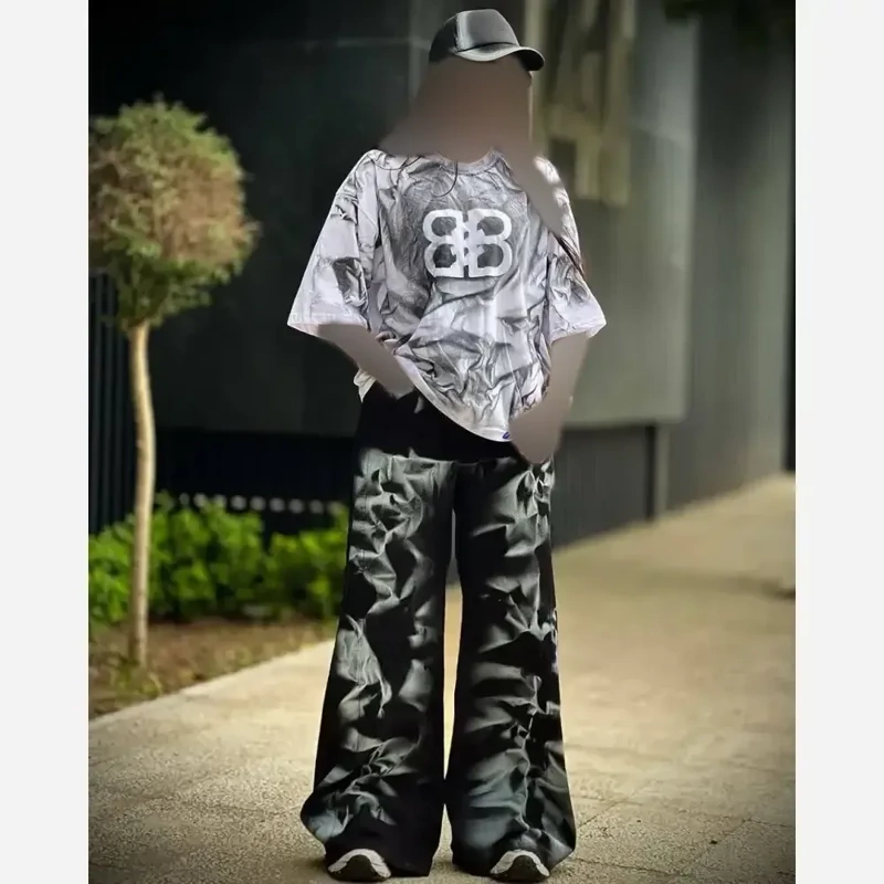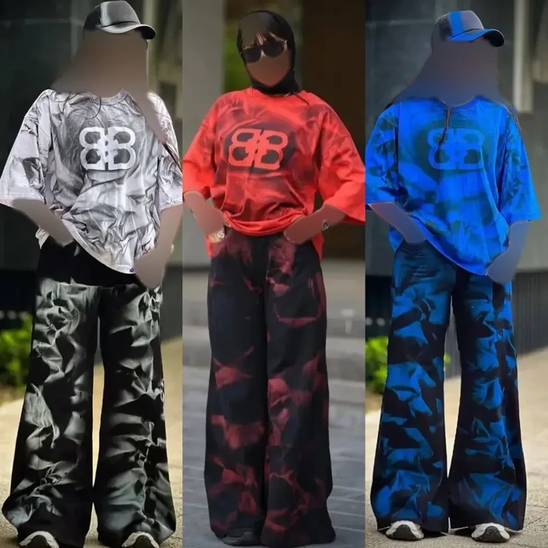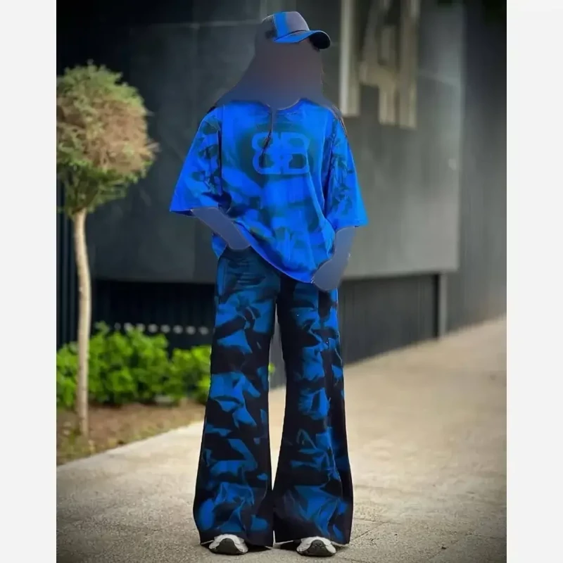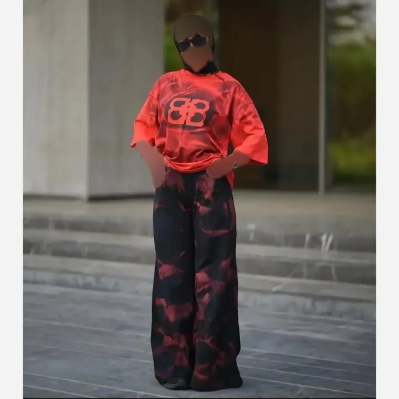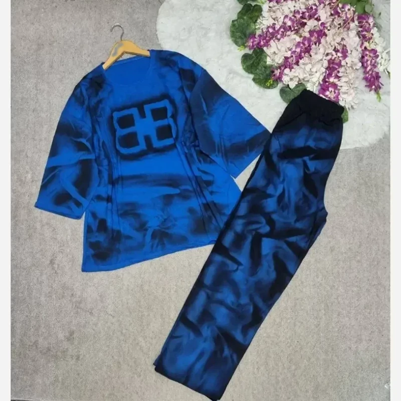 **ست تی شرت و شلوار نخ پنبه زنانه طرح دار قواره دار سایز فری**