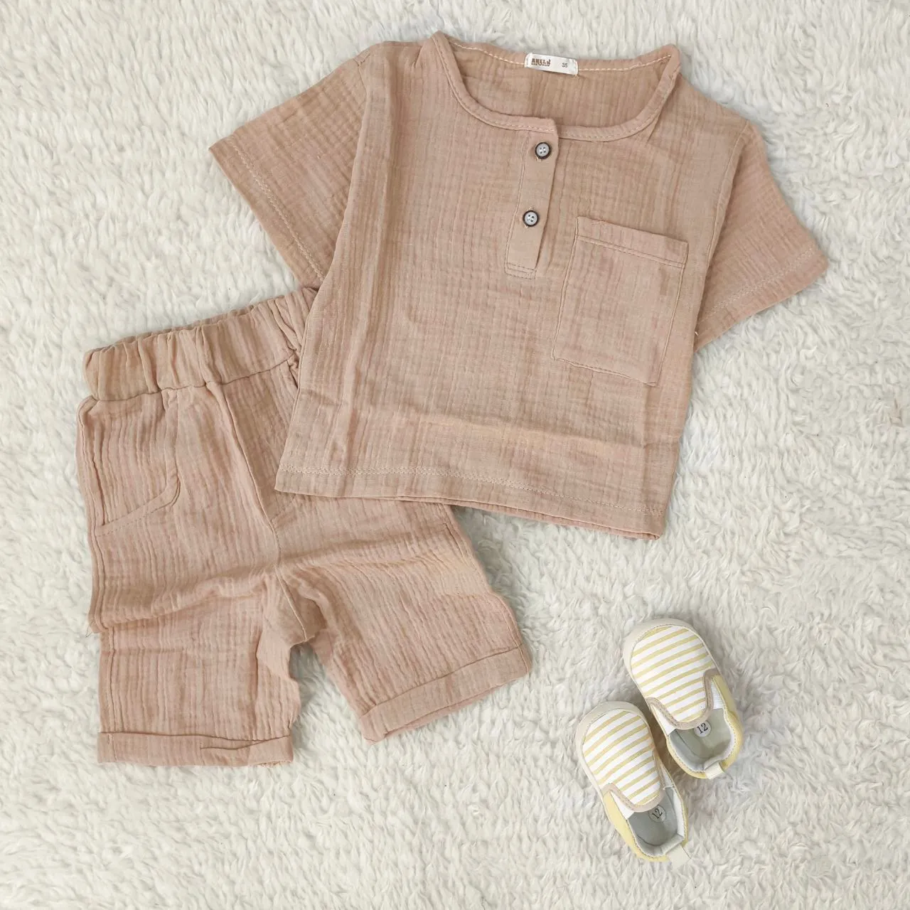 ⭕️سایز 35(1تا2سال)👈پهنا 31/ قد تیشرت 33/ قد شورت 35/ فاق 25