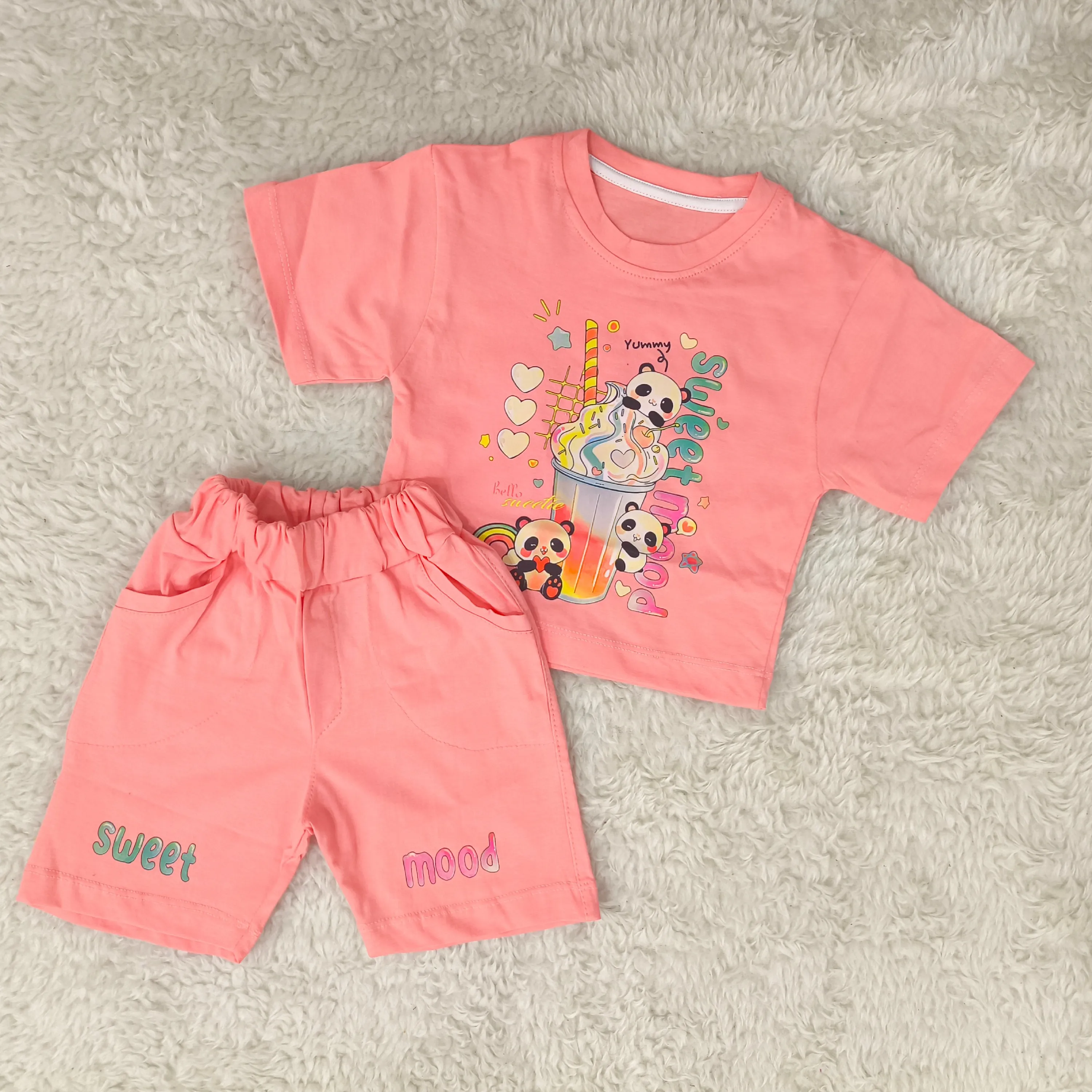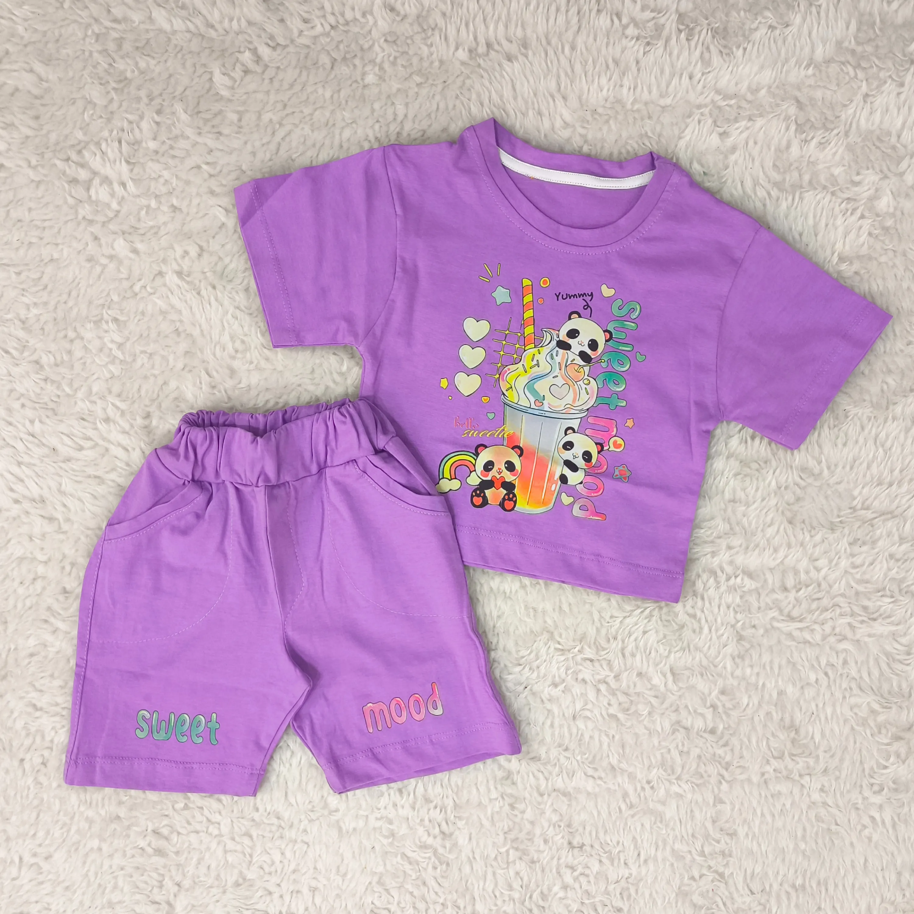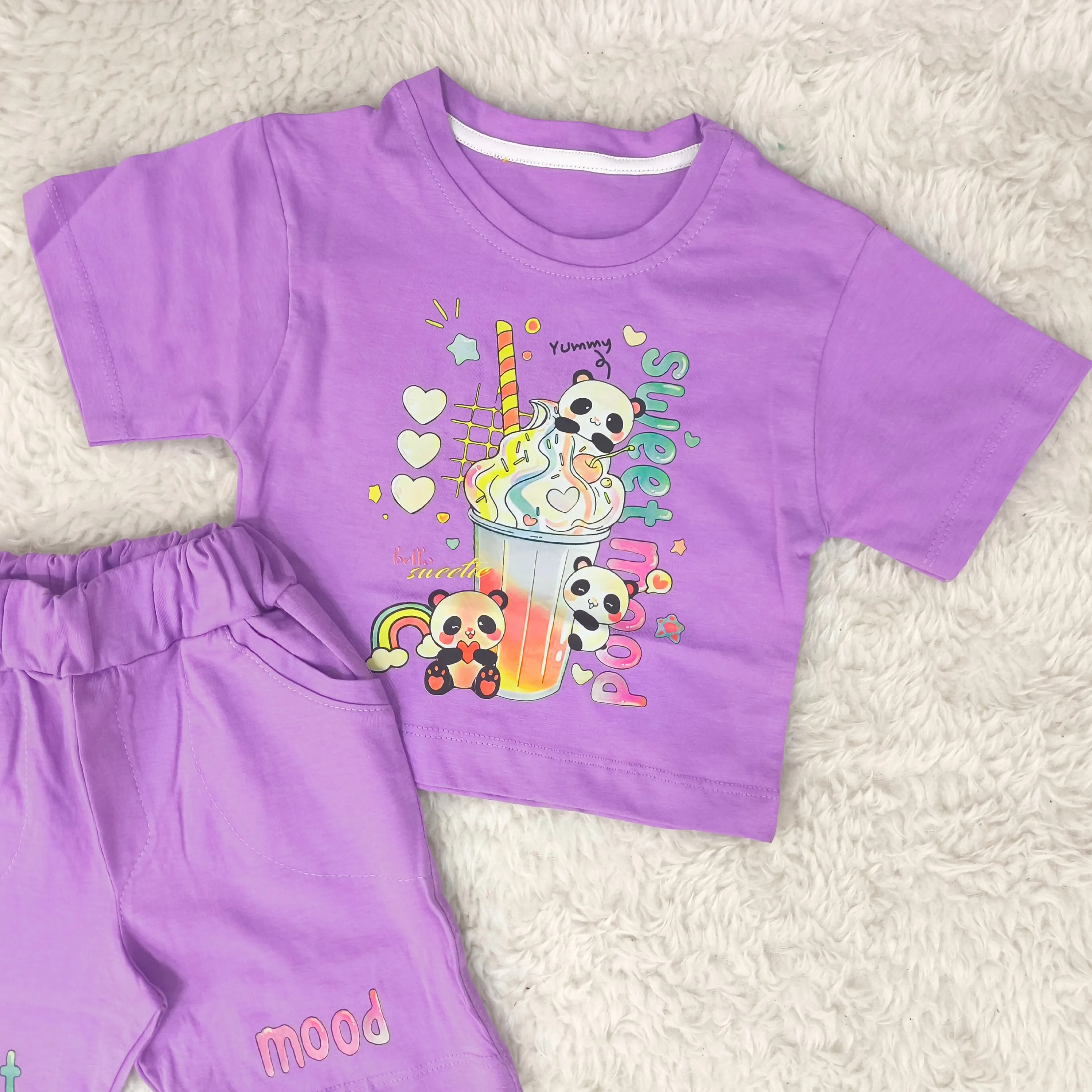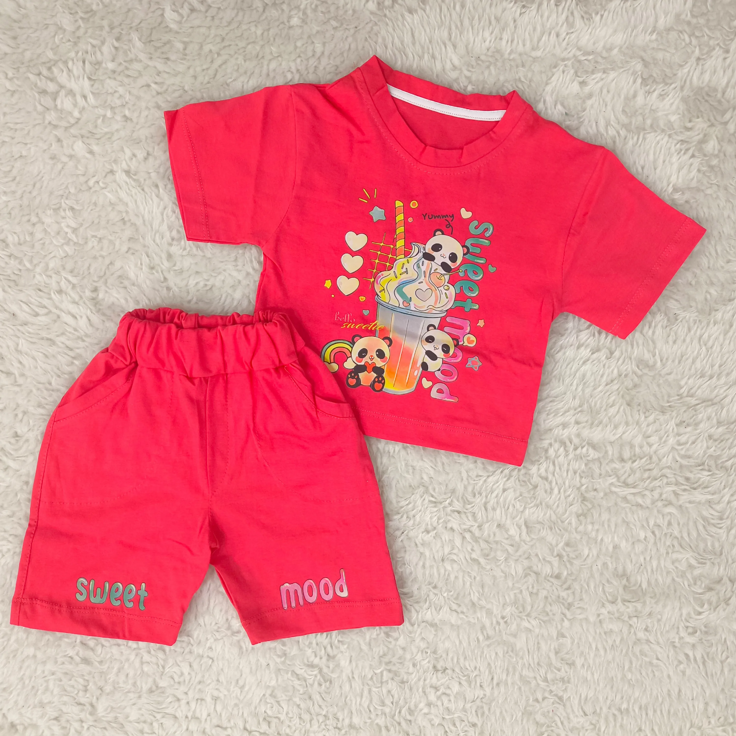 تیشرت و شورتک دخترانه طرح پاندا، انتخابی ایدهآل برای کودکان 1 تا 3 سال. این ست دوستداشتنی با طرح پانداهای شاد، راحتی و زیبایی را برای دلبند شما به ارمغان میآورد.