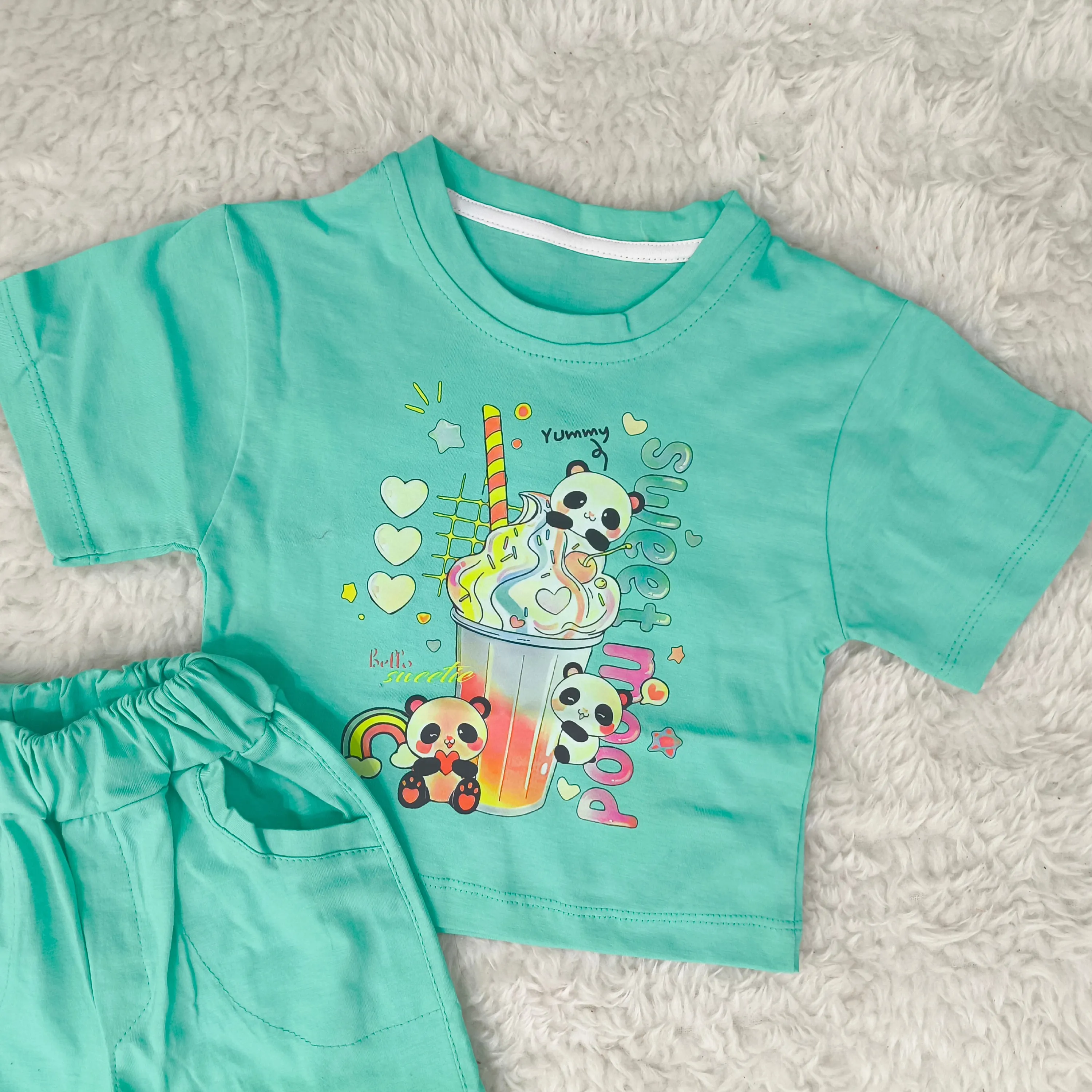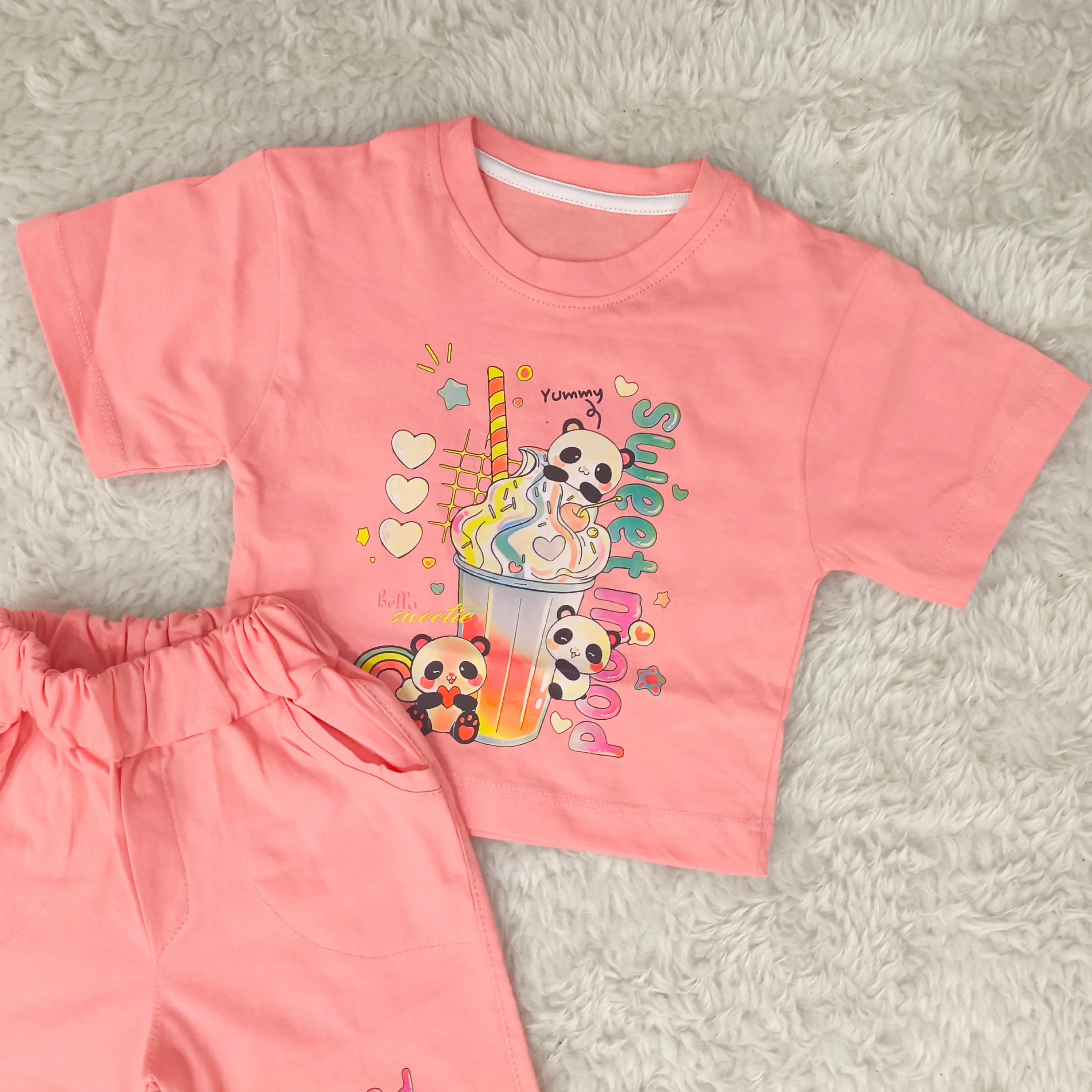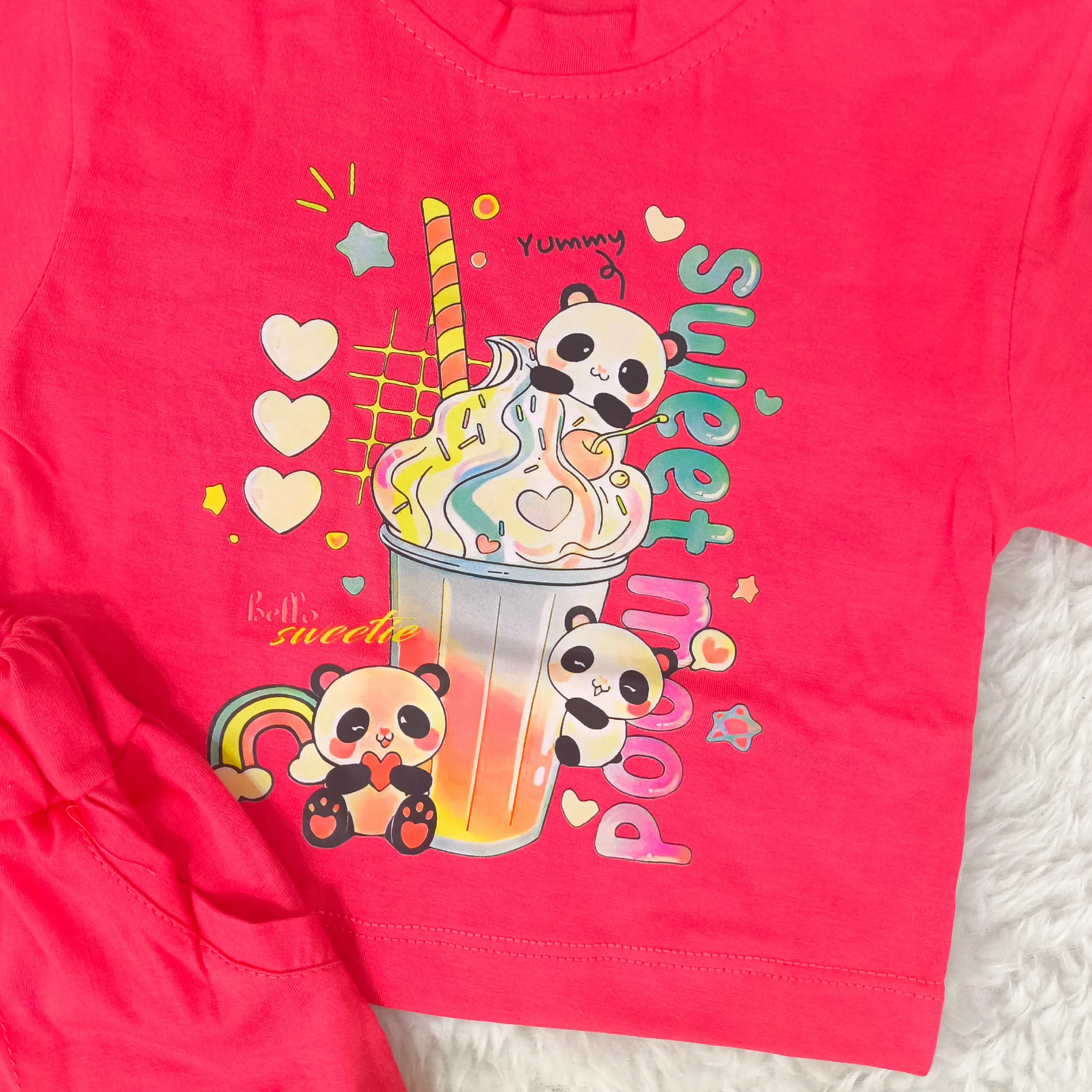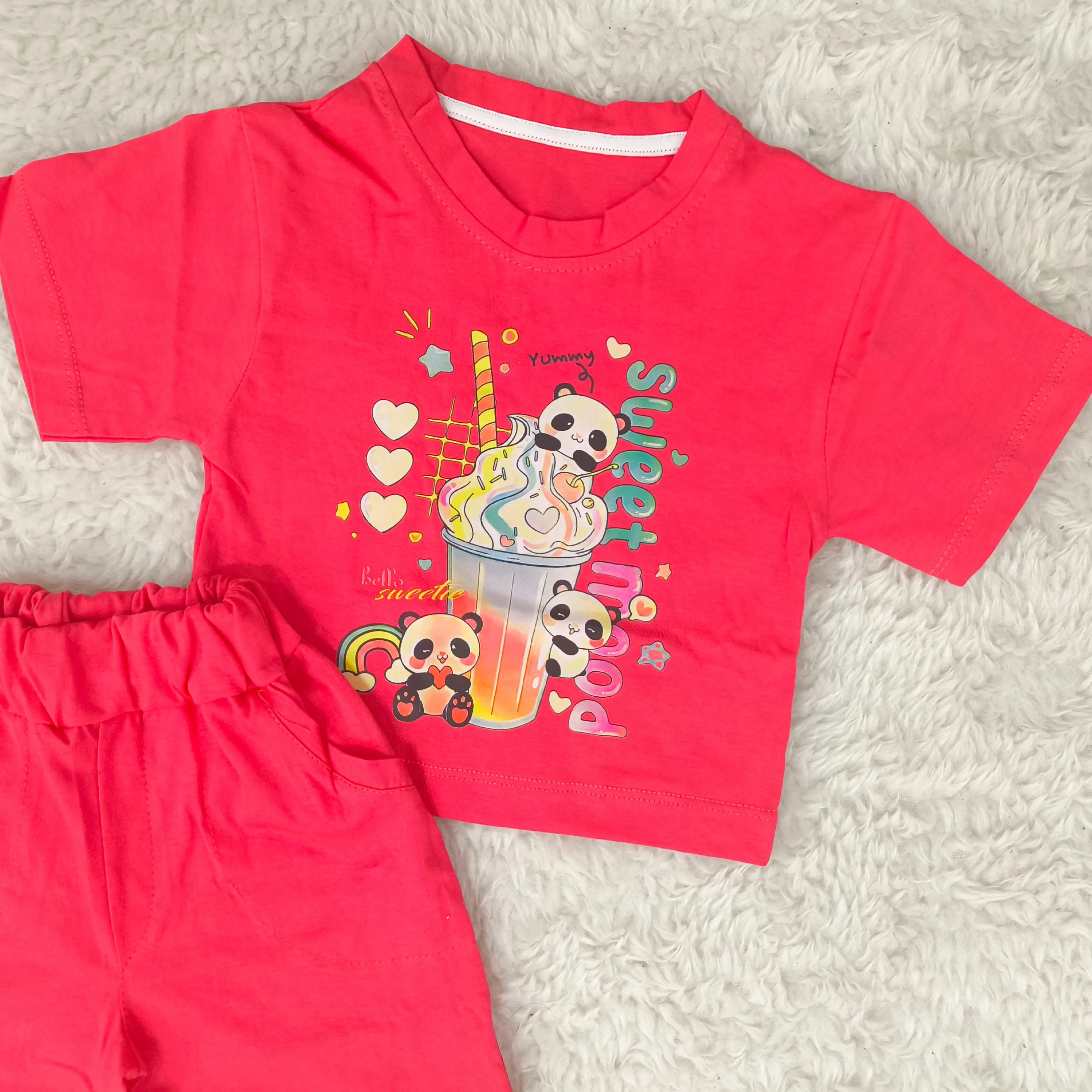 تیشرت و شورتک دخترانه طرح پاندا، انتخابی ایدهآل برای کودکان 1 تا 3 سال. این ست دوستداشتنی با طرح پانداهای شاد، راحتی و زیبایی را برای دلبند شما به ارمغان میآورد.
