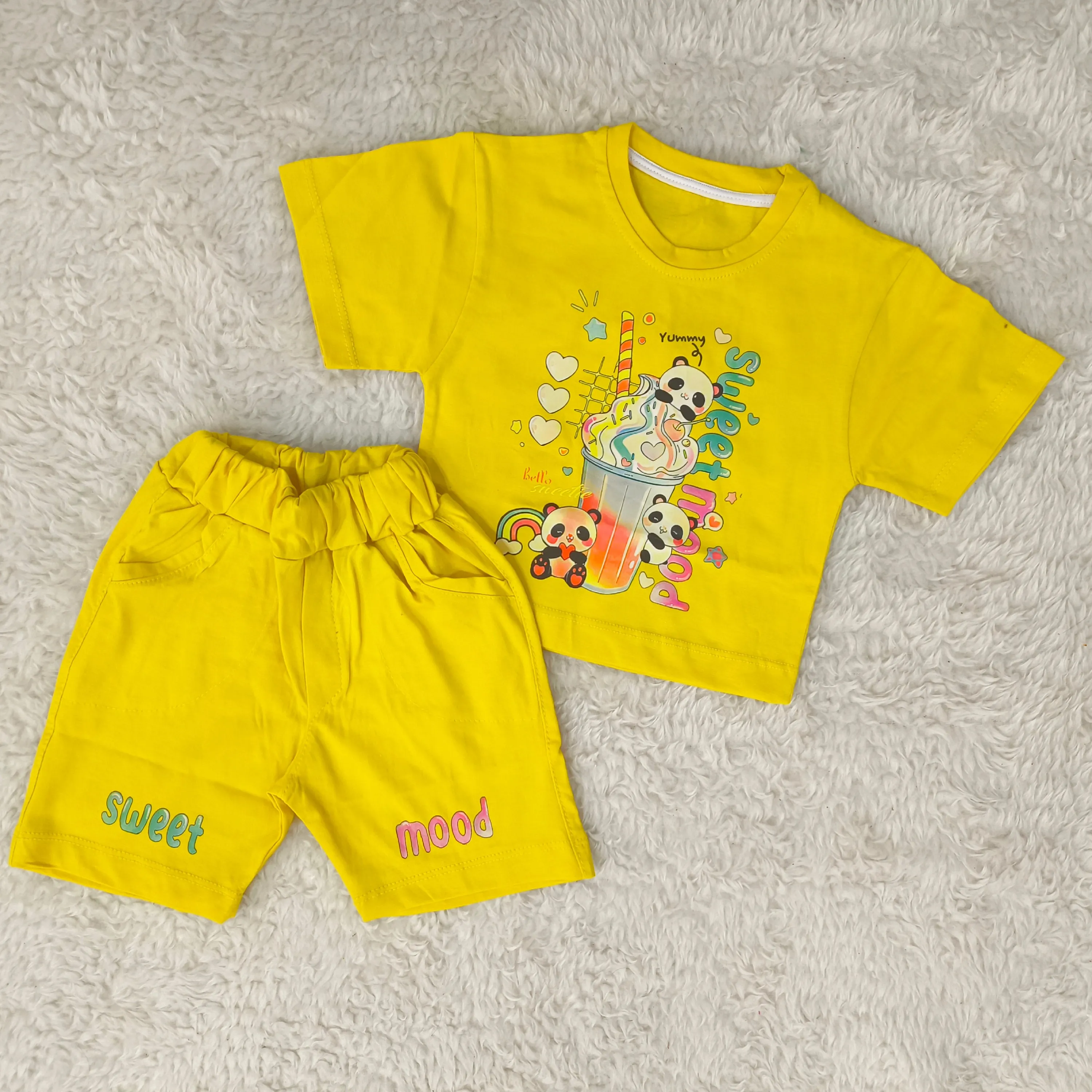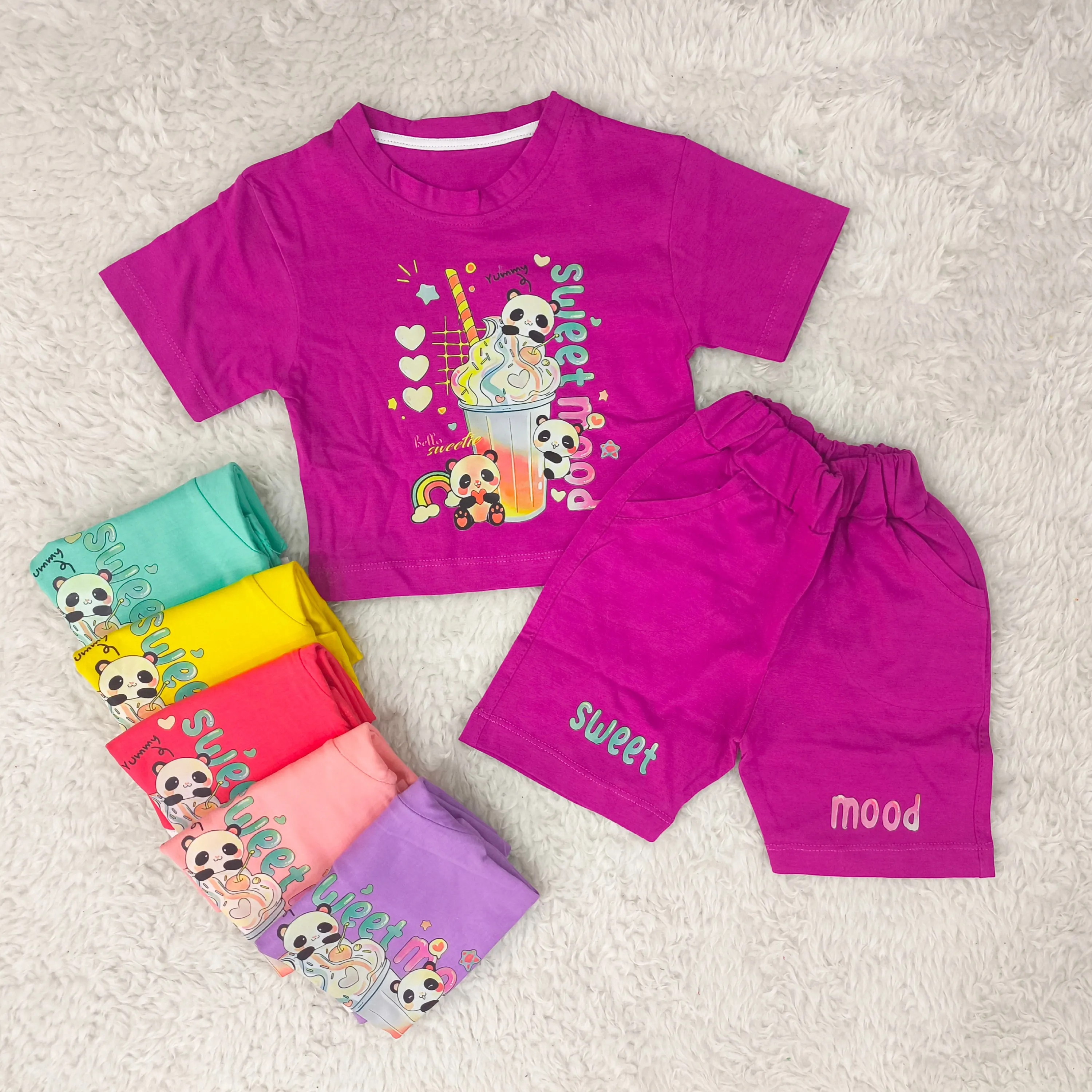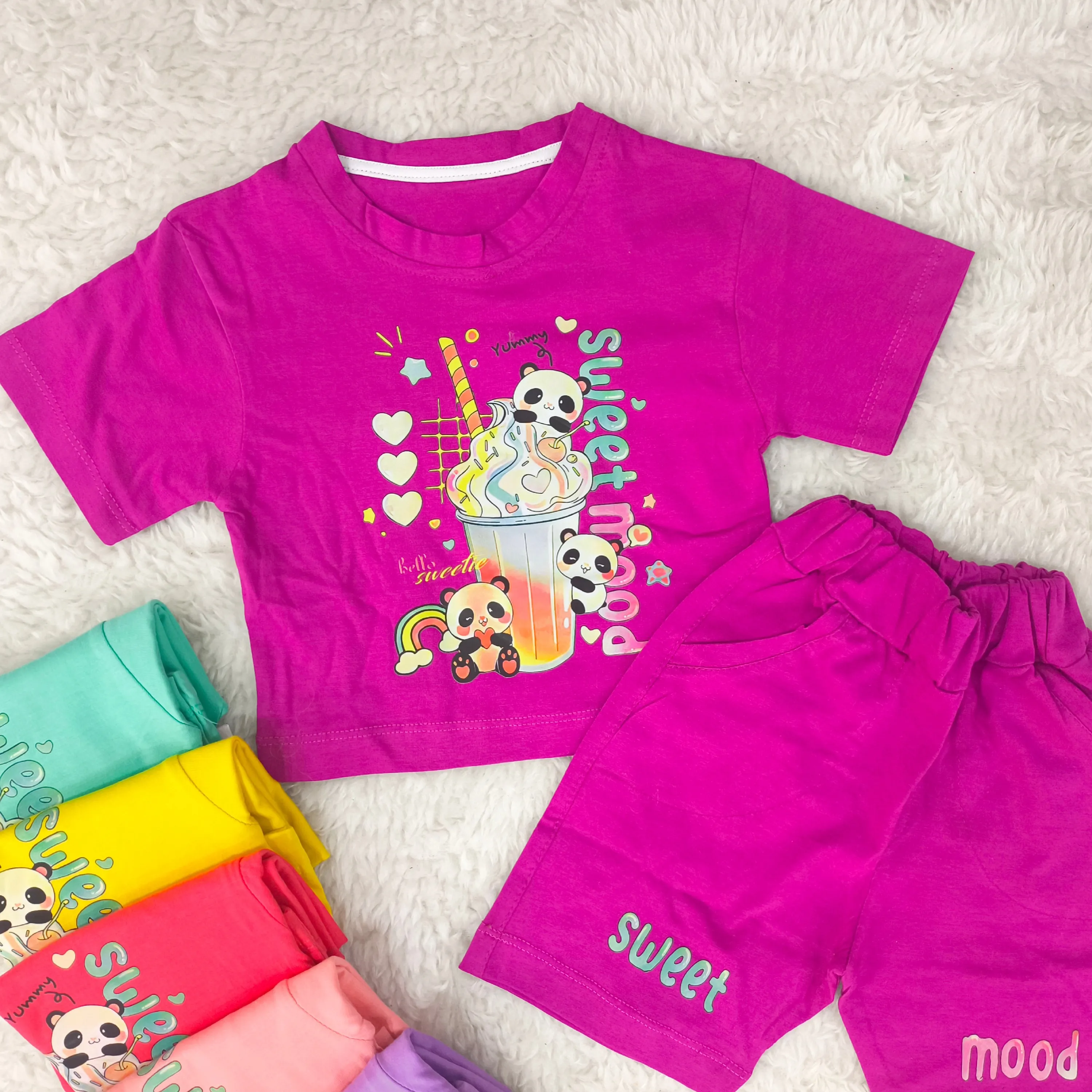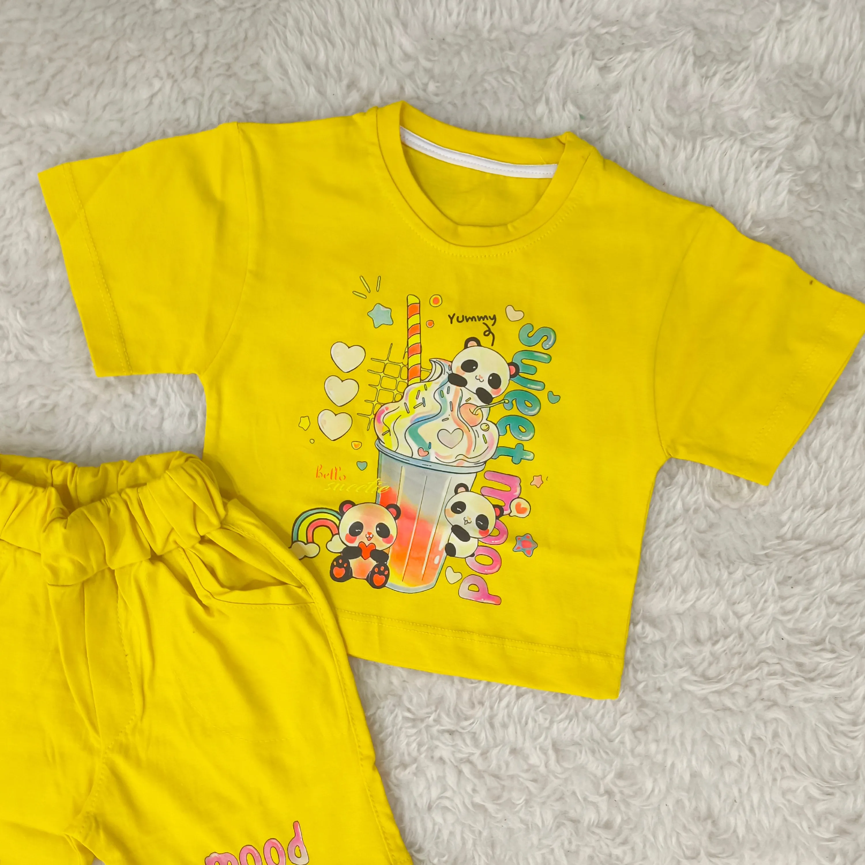 تیشرت و شورتک دخترانه طرح پاندا، انتخابی ایدهآل برای کودکان 1 تا 3 سال. این ست دوستداشتنی با طرح پانداهای شاد، راحتی و زیبایی را برای دلبند شما به ارمغان میآورد.