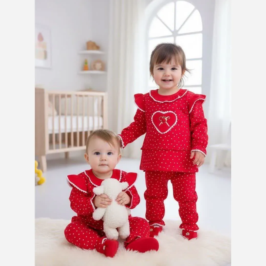 **بلوز شلوار نوزادی دخترانه طرح خالدار قرمز یلدایی - راحتی و زیبایی برای کوچولوهای شما**