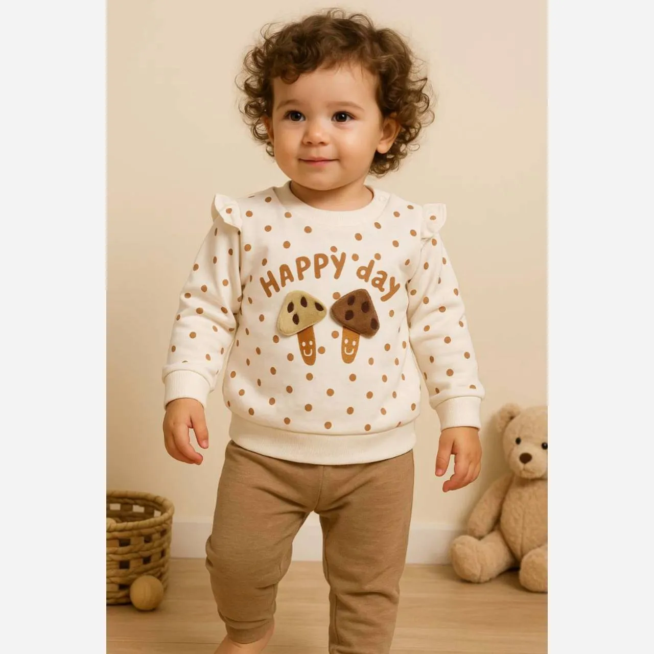 این ست بلوز شلوار دخترانه با طرح جذاب قارچ پولکی، انتخابی ایدهآل برای استایل روزمره دلبند شماست. جنس لطیف و باکیفیت این لباس، راحتی بینظیری را برای نوزادان و کودکان فراهم میکند.