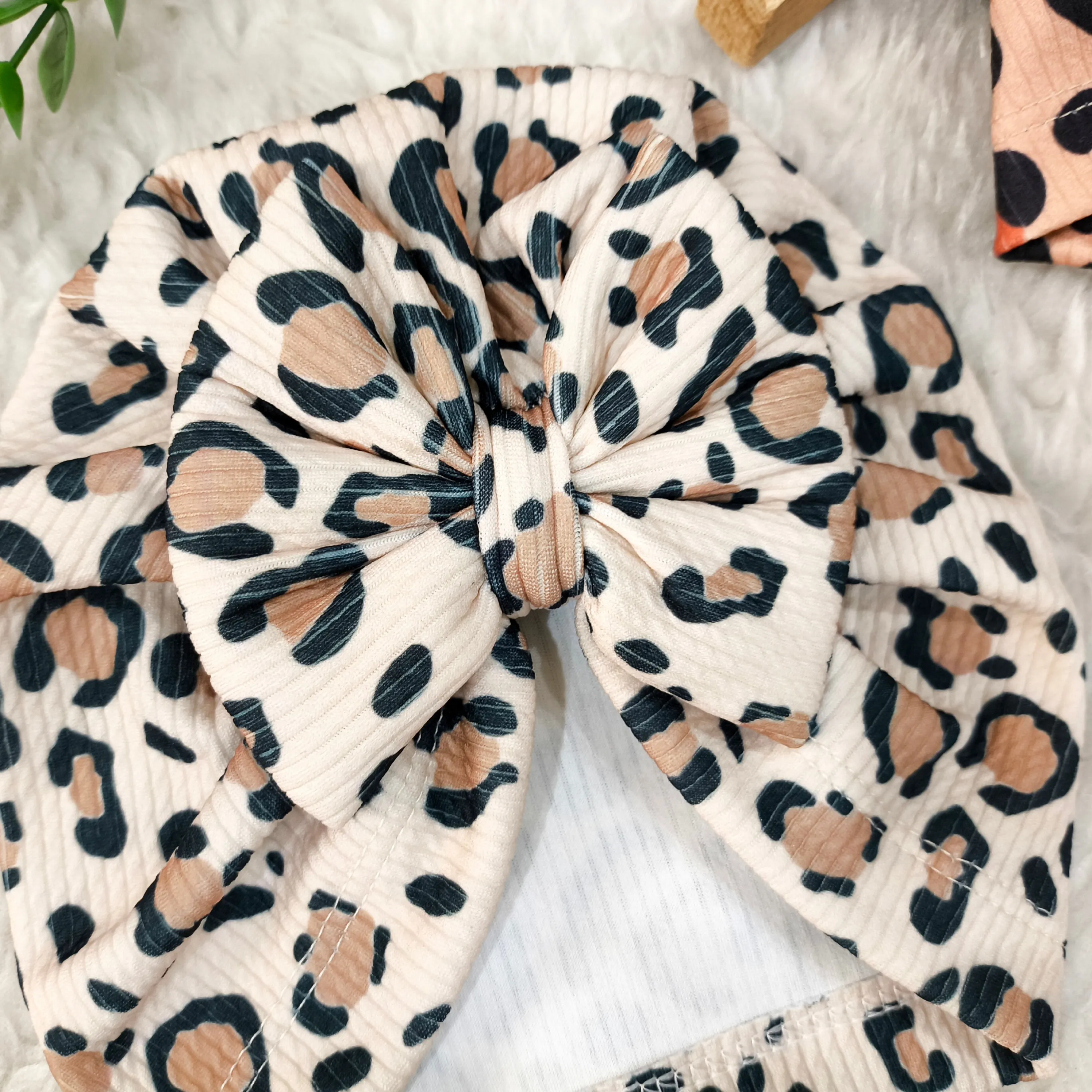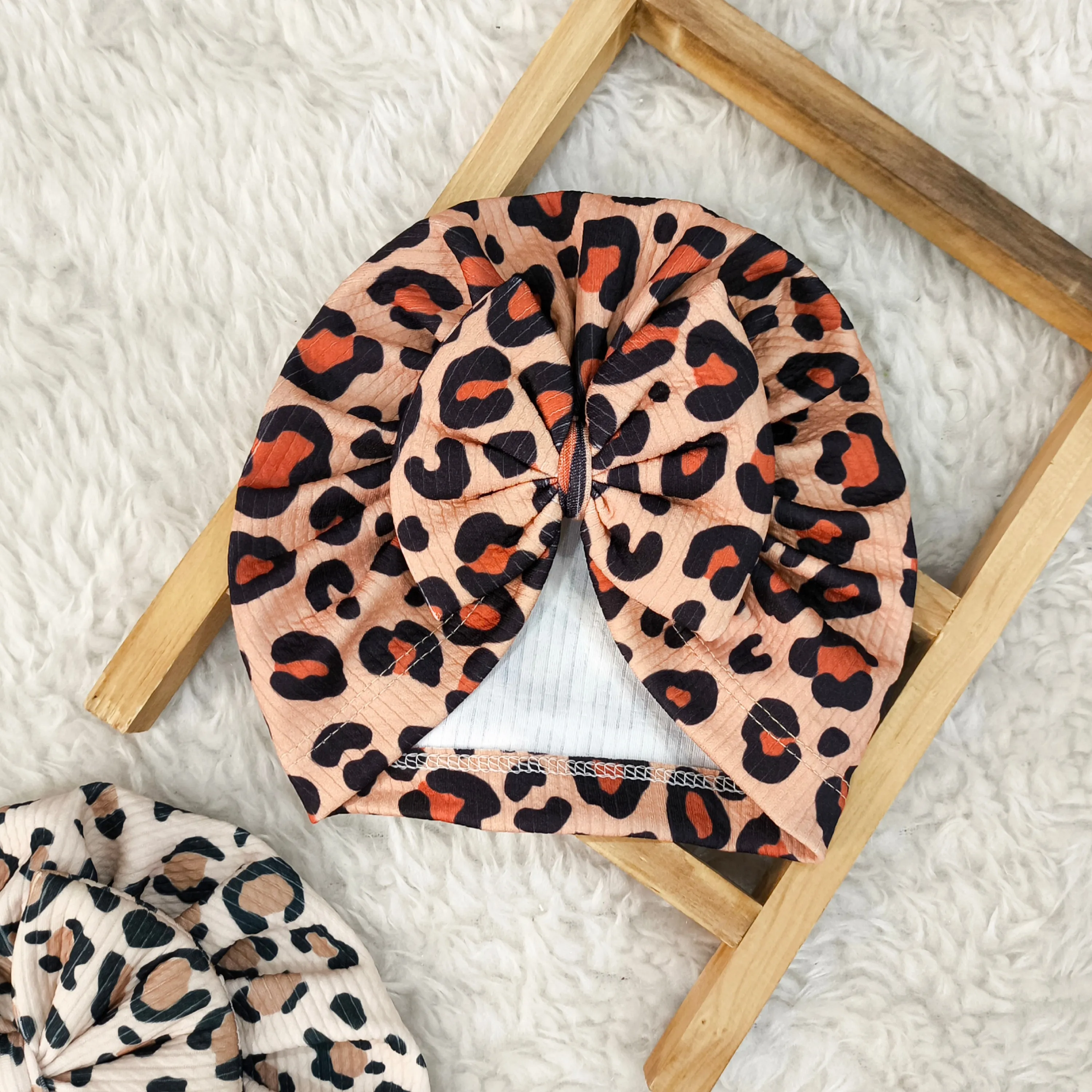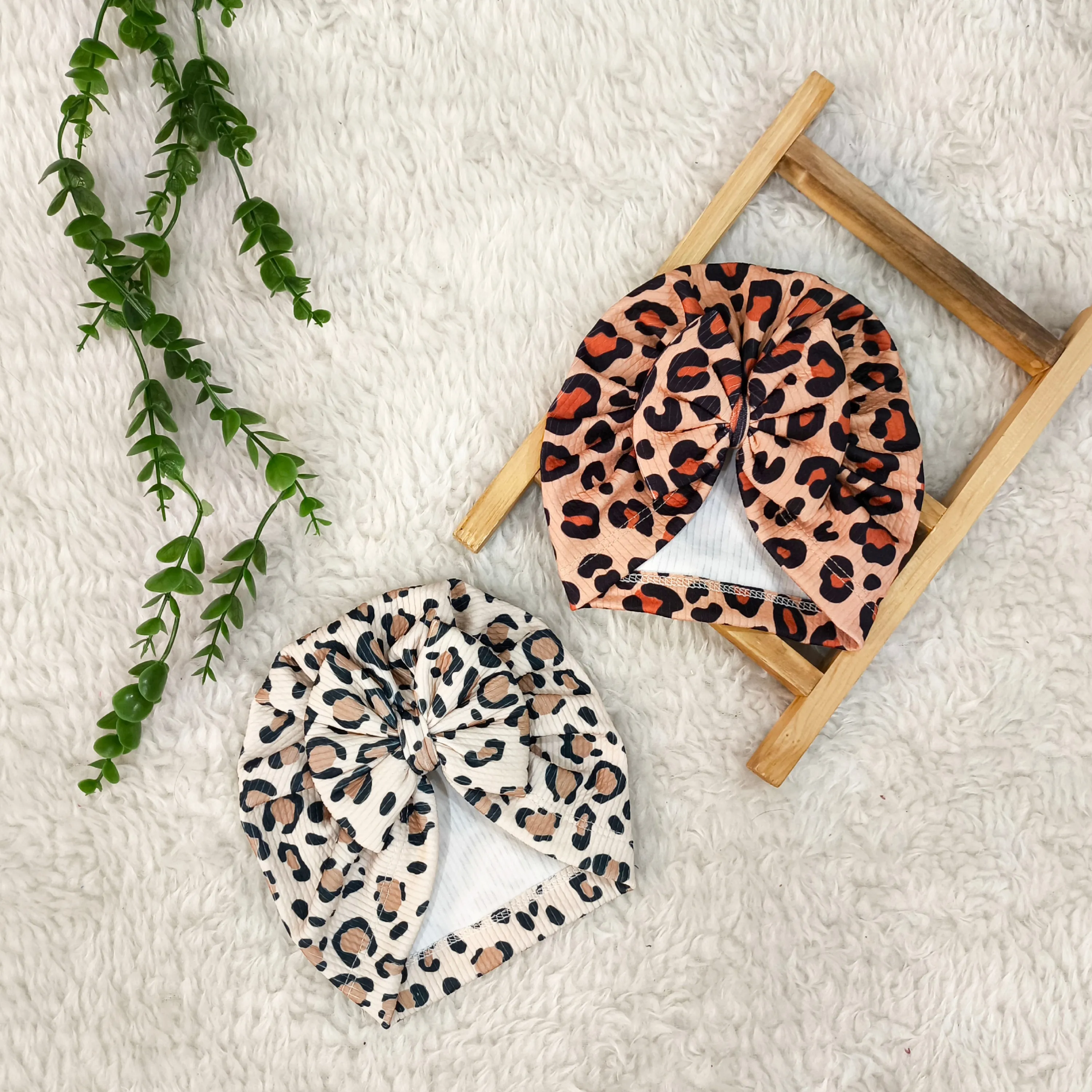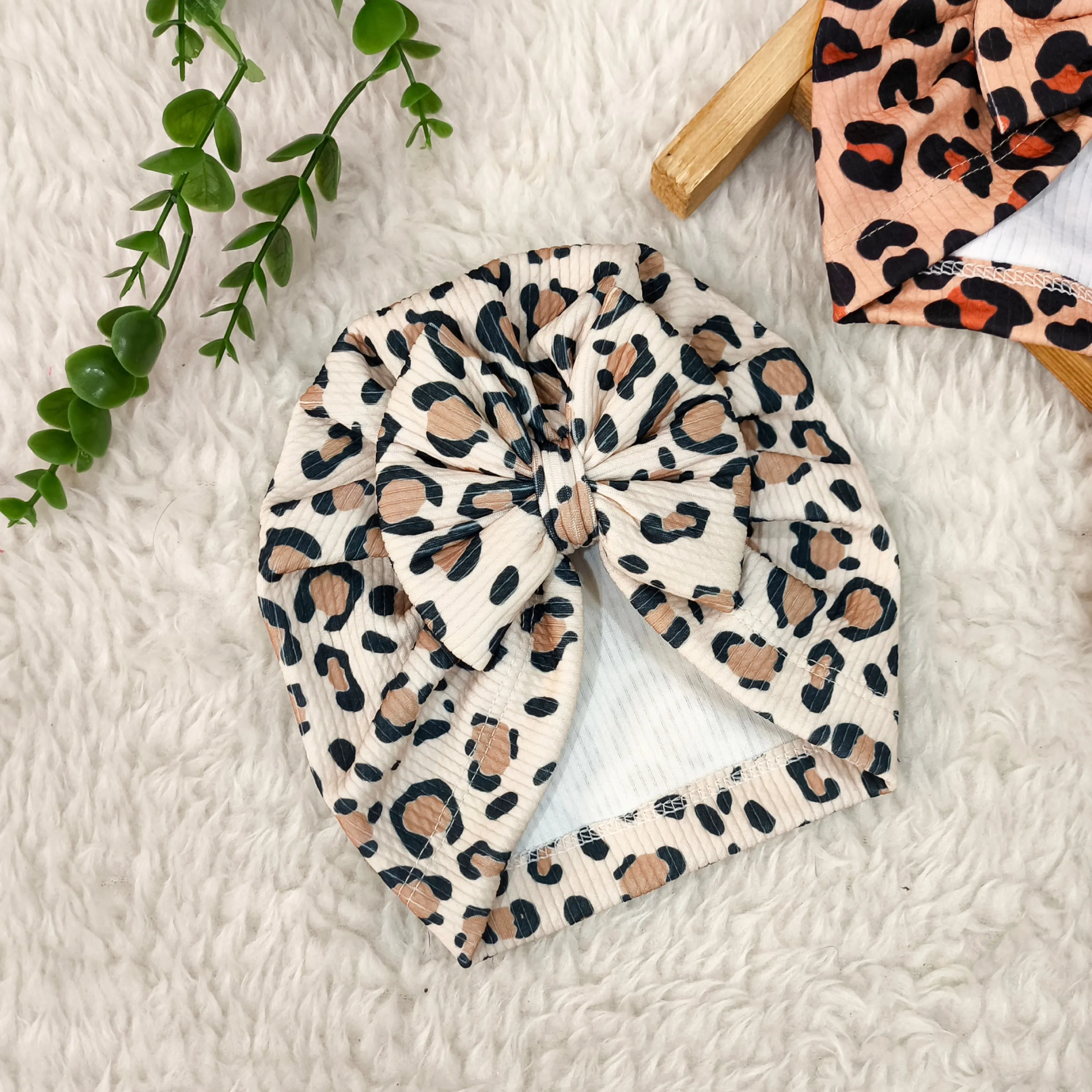 **توربان نوزاد دخترانه طرح پلنگی کبریتی | مناسب 2 ماه تا 2 سال**