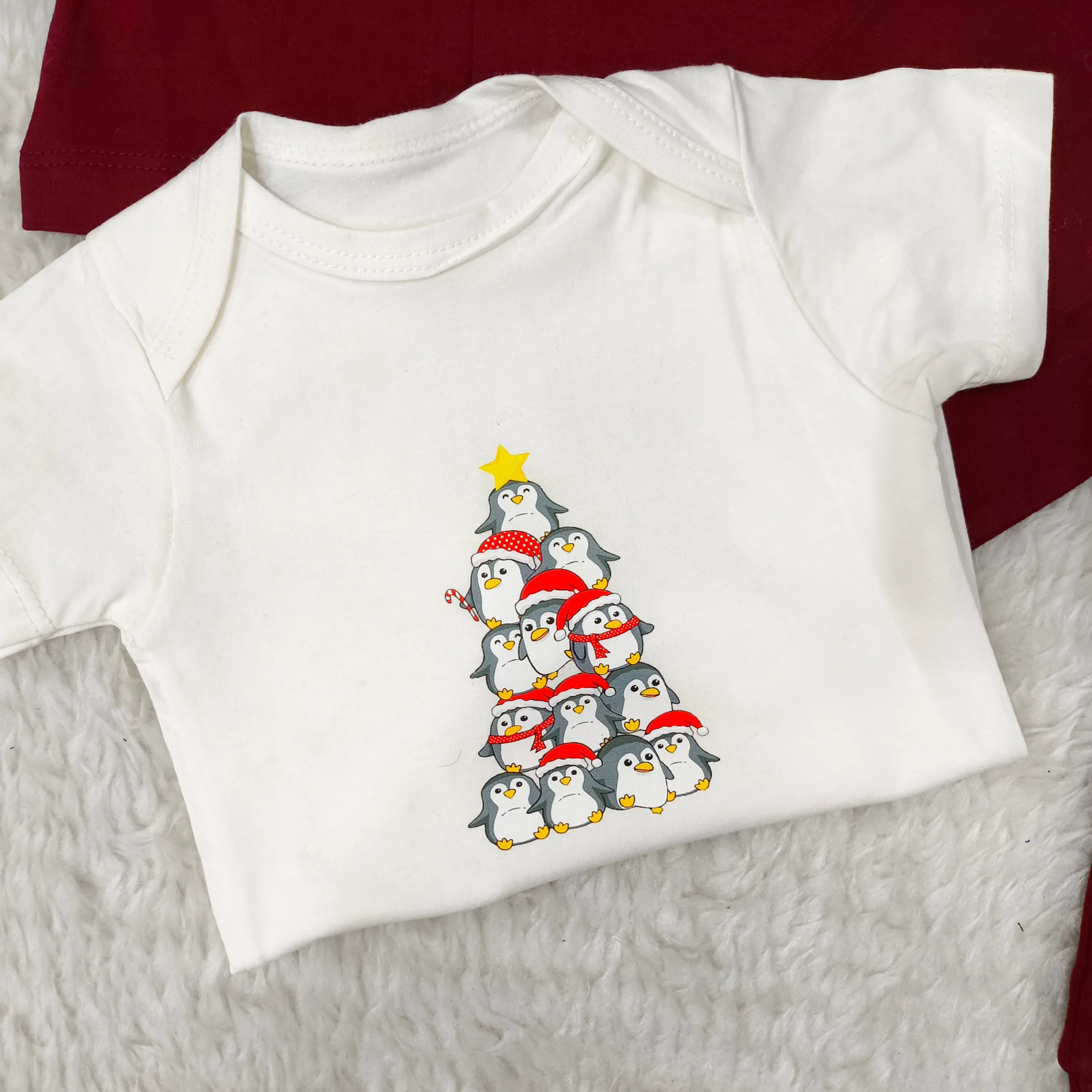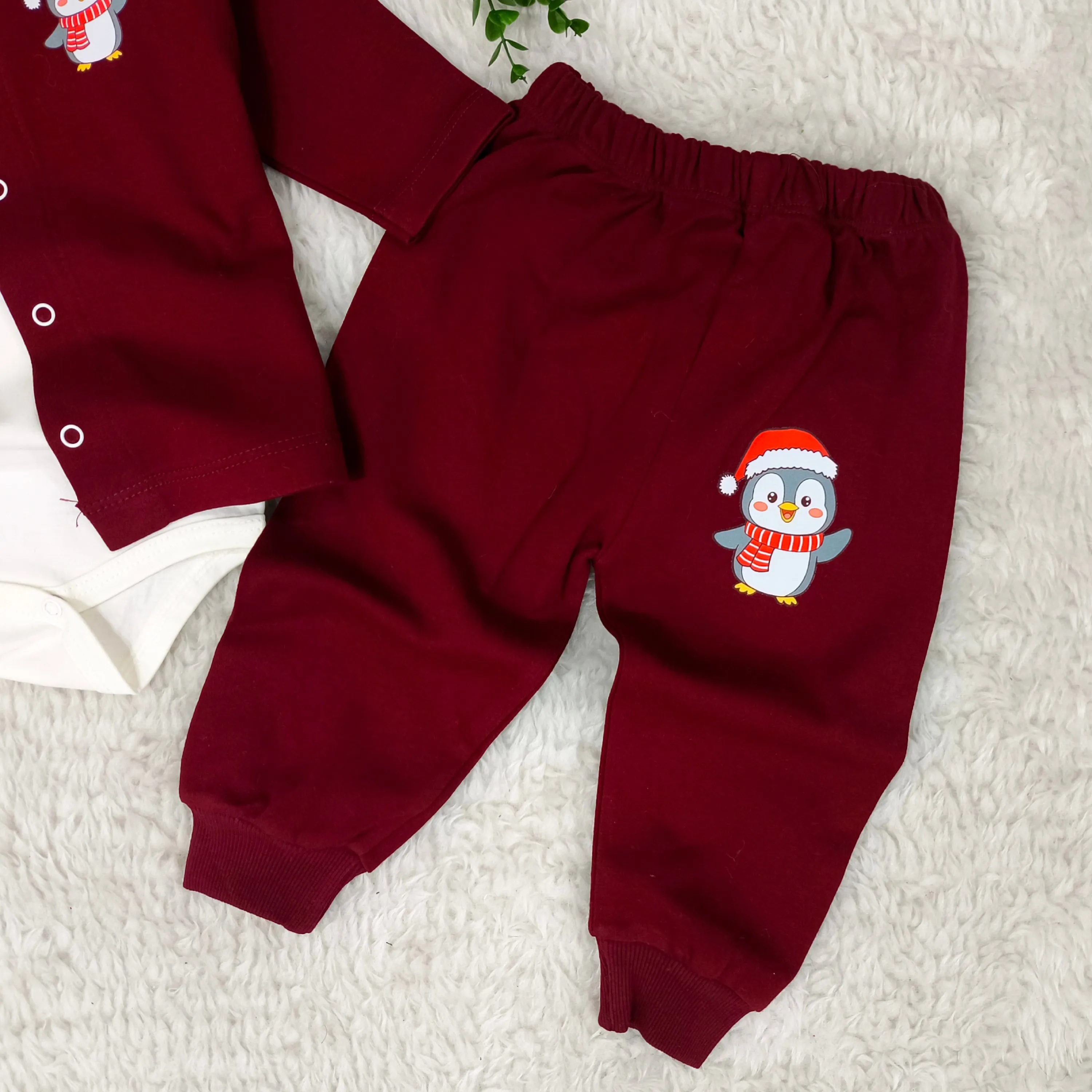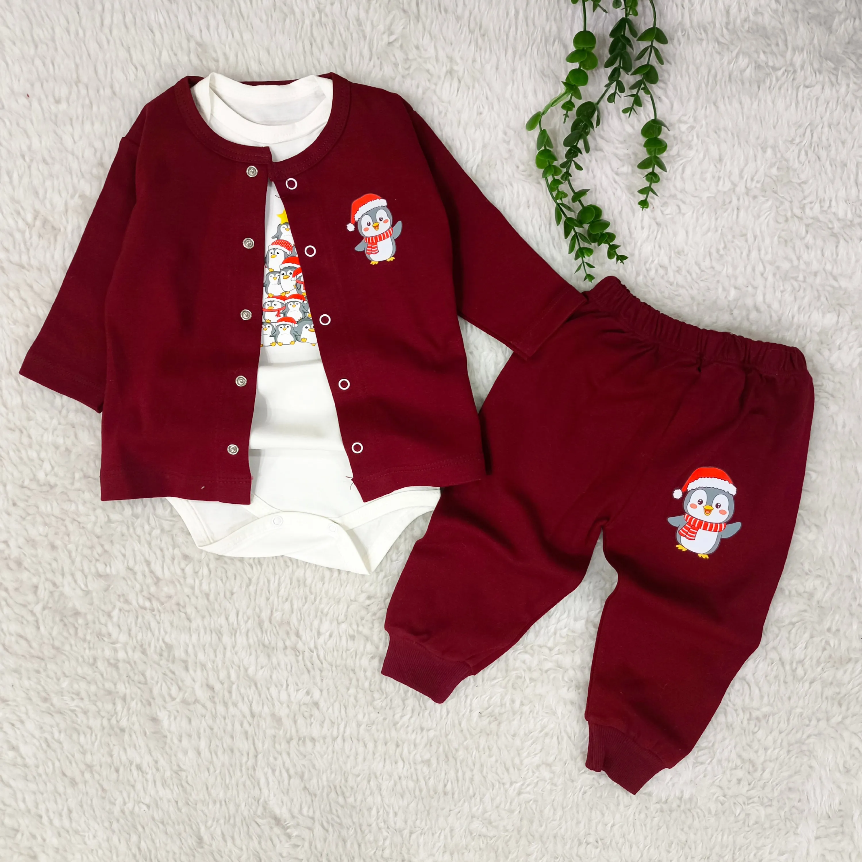 سه تکه بلوز شلوار و بادی نوزادی دخترانه پسرانه ست یلدایی پنگوئن