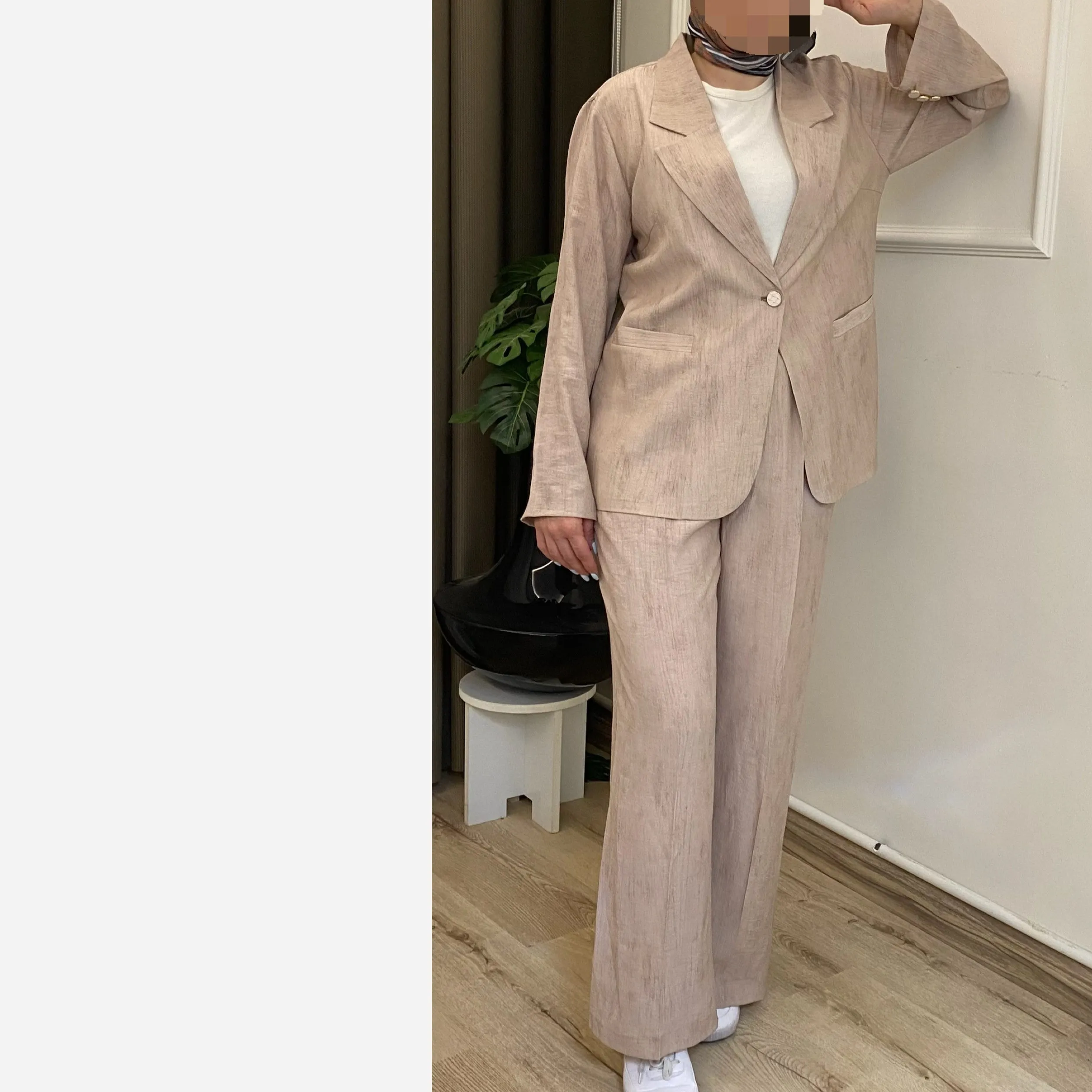 کت و شلوار شانتون گازوئیلی کرم زنانه شیک