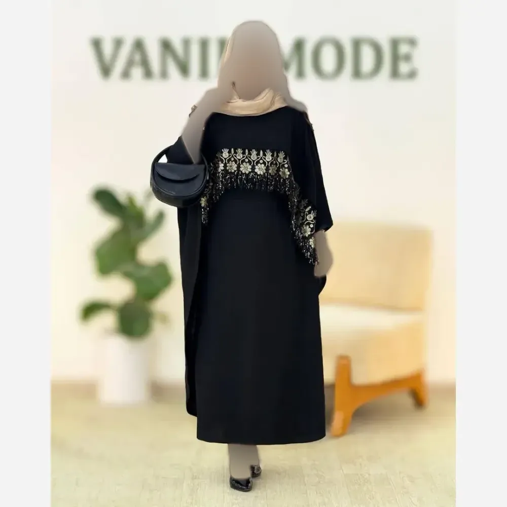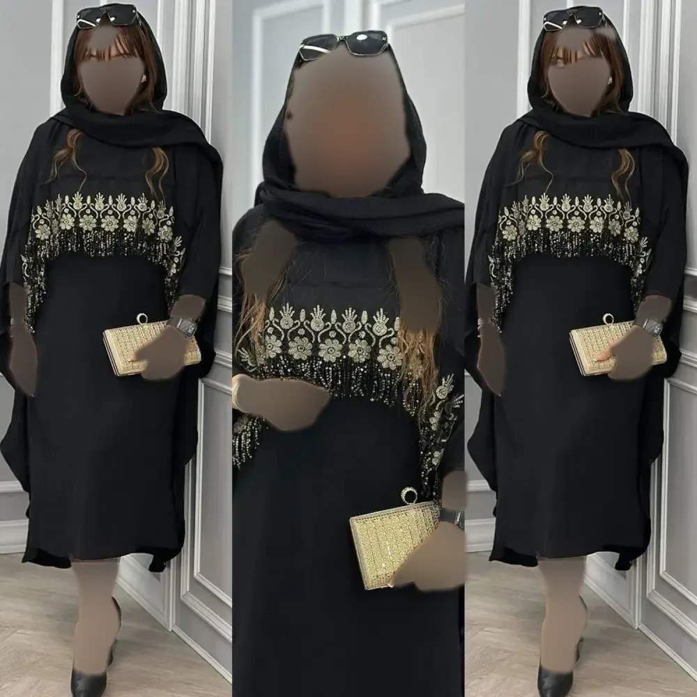 مانتو مدل نجلا ابر و بادی فری سایز مشکی خرج کار طلایی و مشکی قد 110