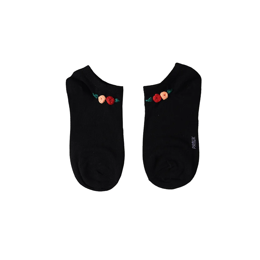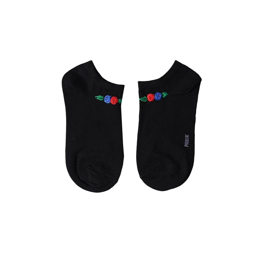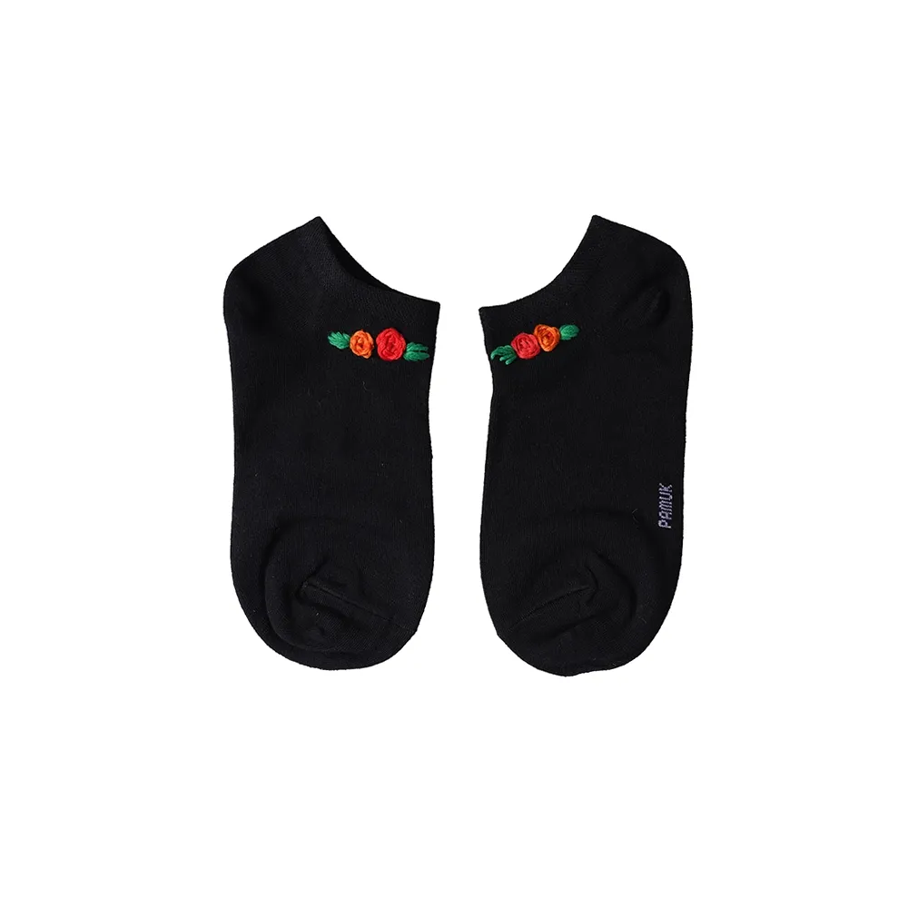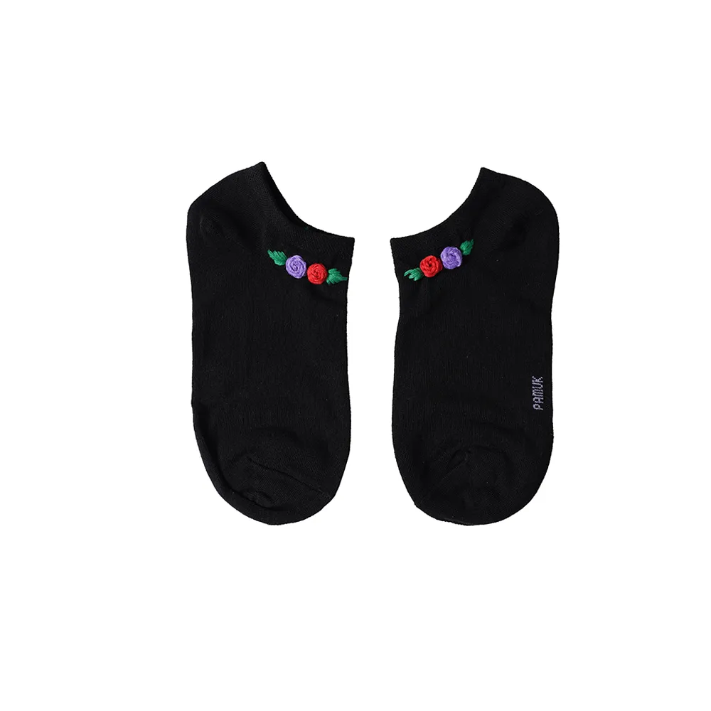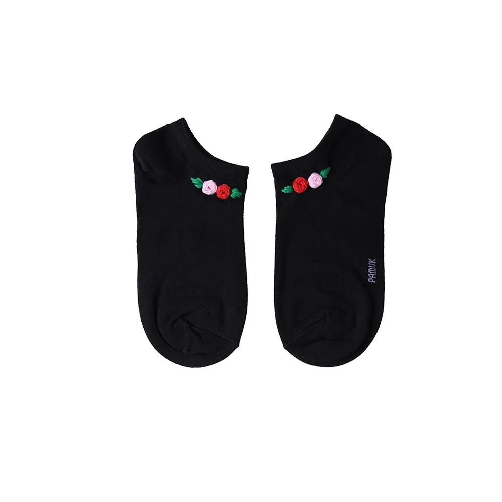 جوراب زنانه طرح گل گلدوزی شده مشکی فری سایز مناسب 36 تا 40