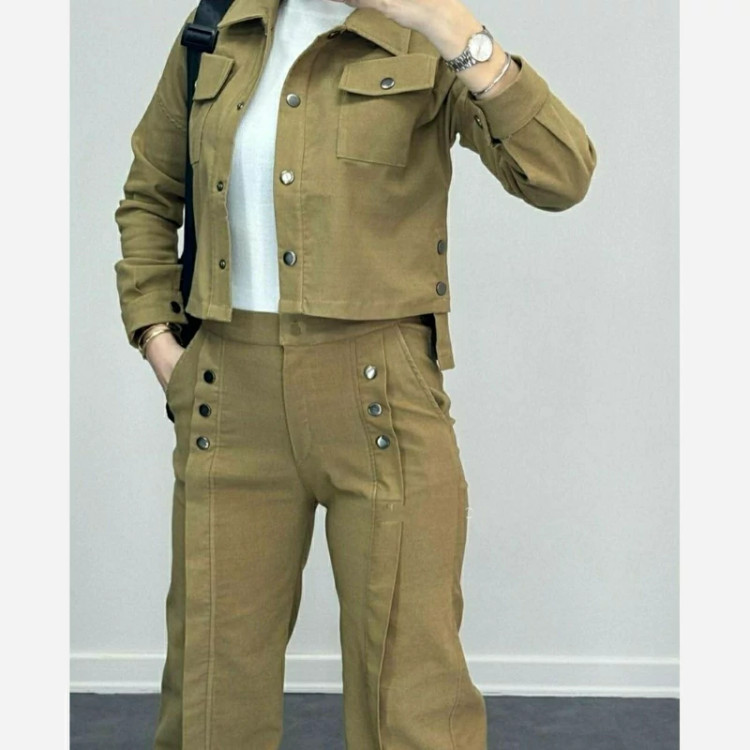 ست دوتبکه کت و شلوار کتان پرچی(5043) ـ