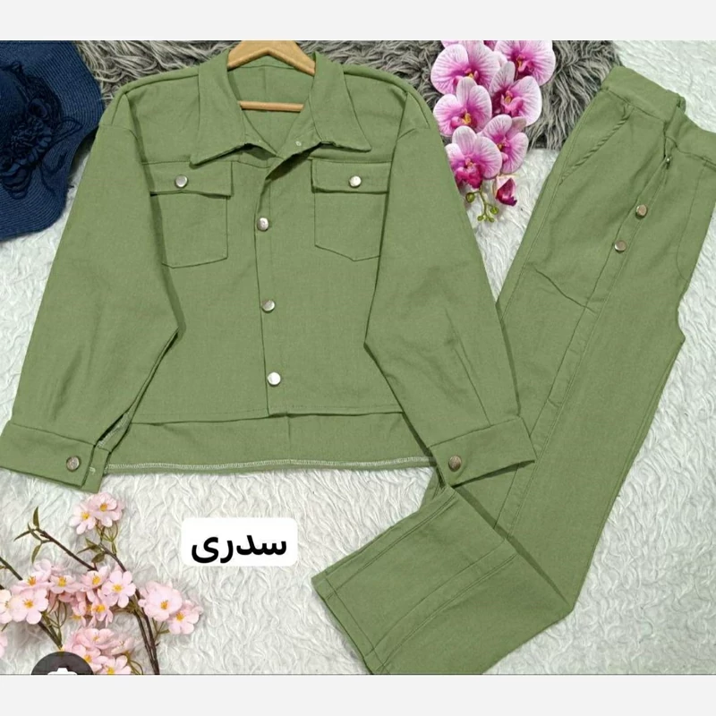 ✅فری سايز:38,36تا46،44 🍀کت تا سینه 110،108🍀قد جلو کت 53 و پشت کت 61🍀 قدشلوار 100 وتا کمر و باسن 110،107 وتا دور ران 60،58🍀