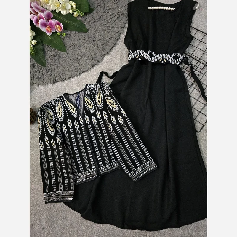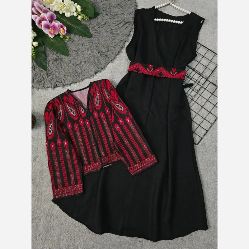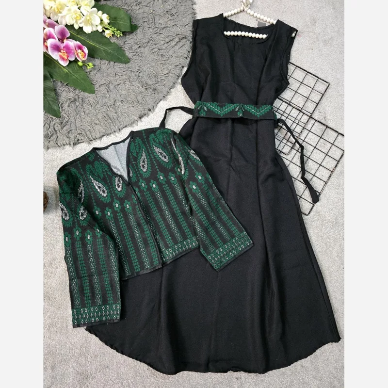 ست سارافون و کت مجلسی زنانه مدل ققنوس با سوزن دوزی لمه دار