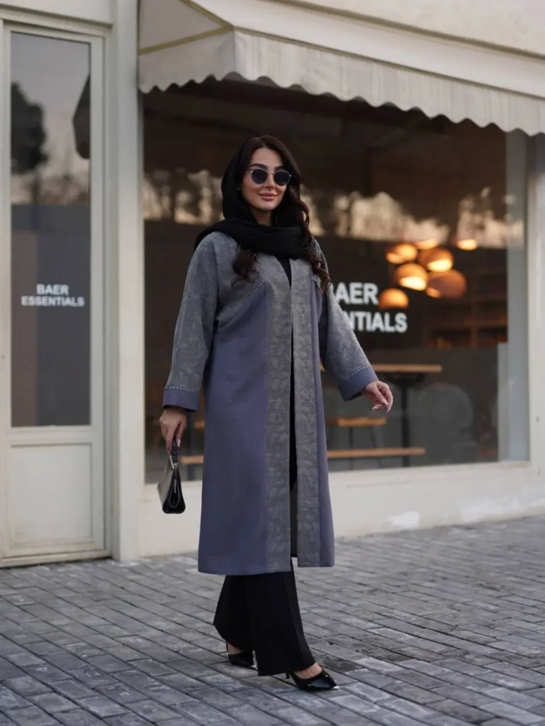 ژاکارد ترکیبی یقه هفت آستین کیمونو مدل رونیکا کد 1322 سایز ۴۲/۵۶
