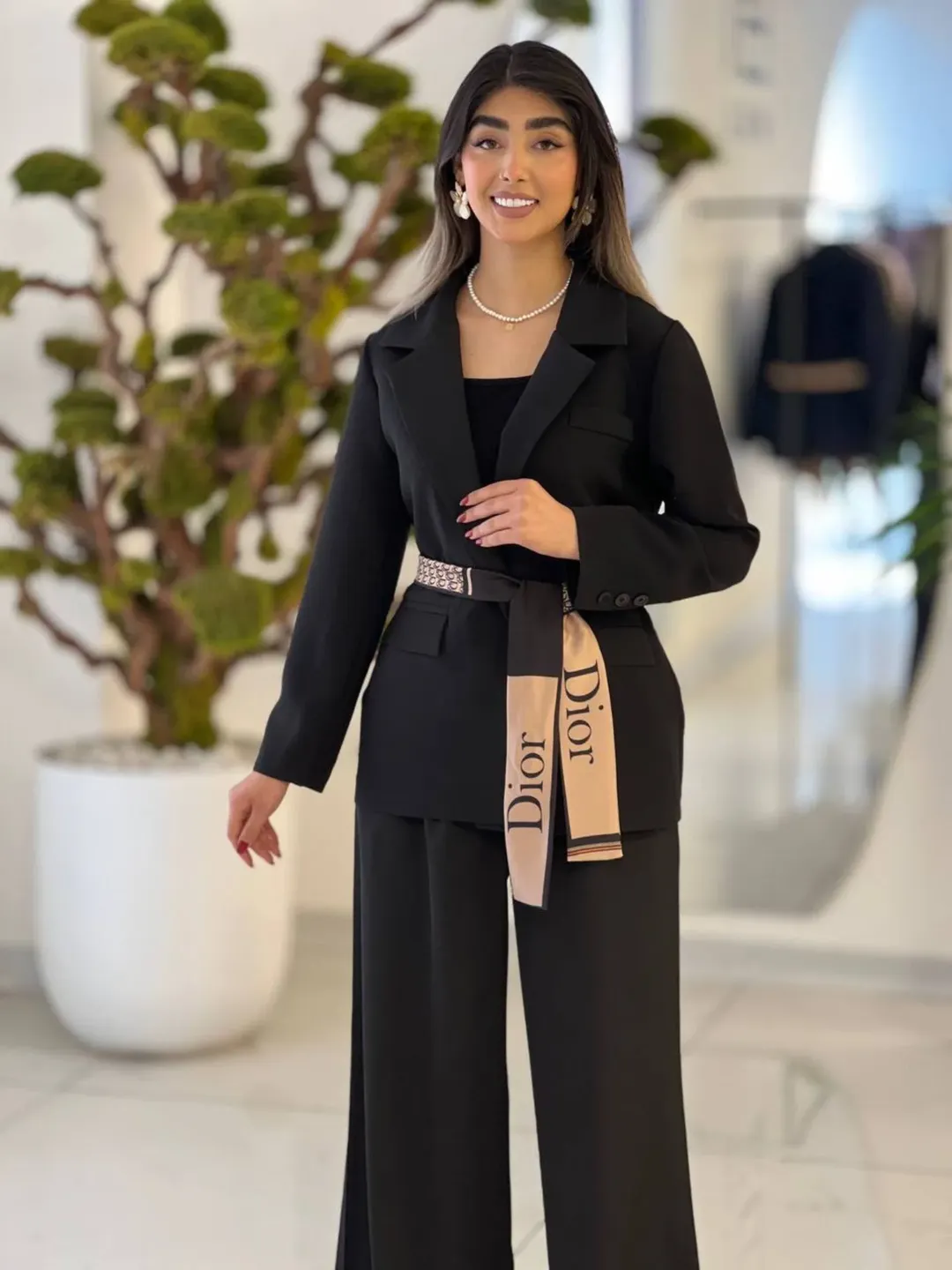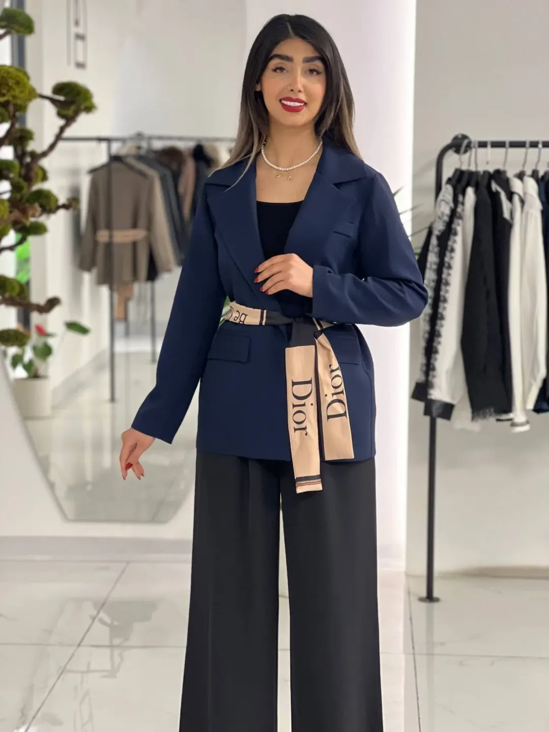 کت هرمس با پارچه کرپ گرم بالا پیش کار لاپی پرشین و کمربند ساتن دیور. مناسب برای سایزها ۳۶ تا ۴۰ و ۴۲ تا ۴۶.