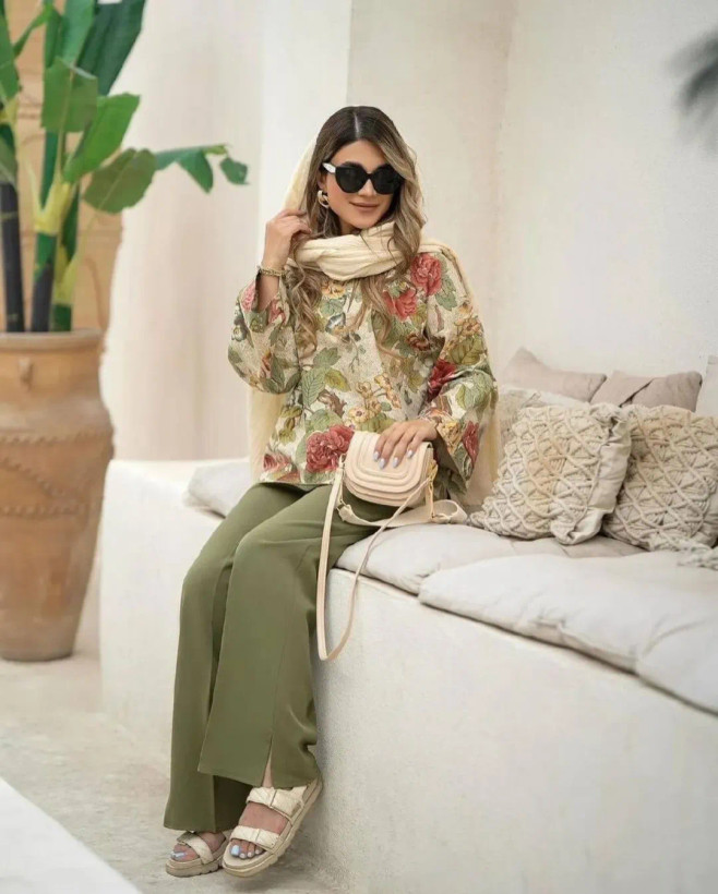 ست بلوز شلوار گلبانو سایز فری ۳۸ تا ۴۶