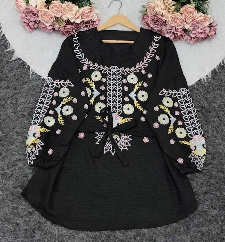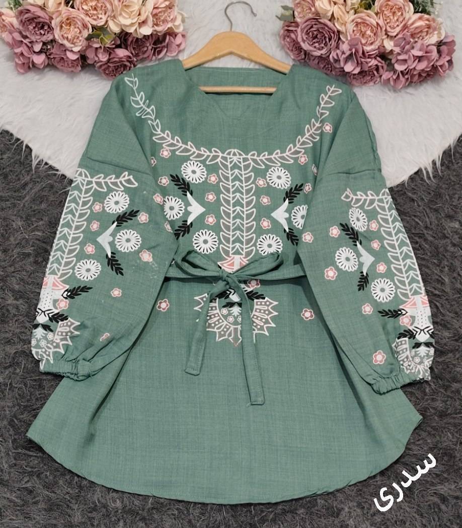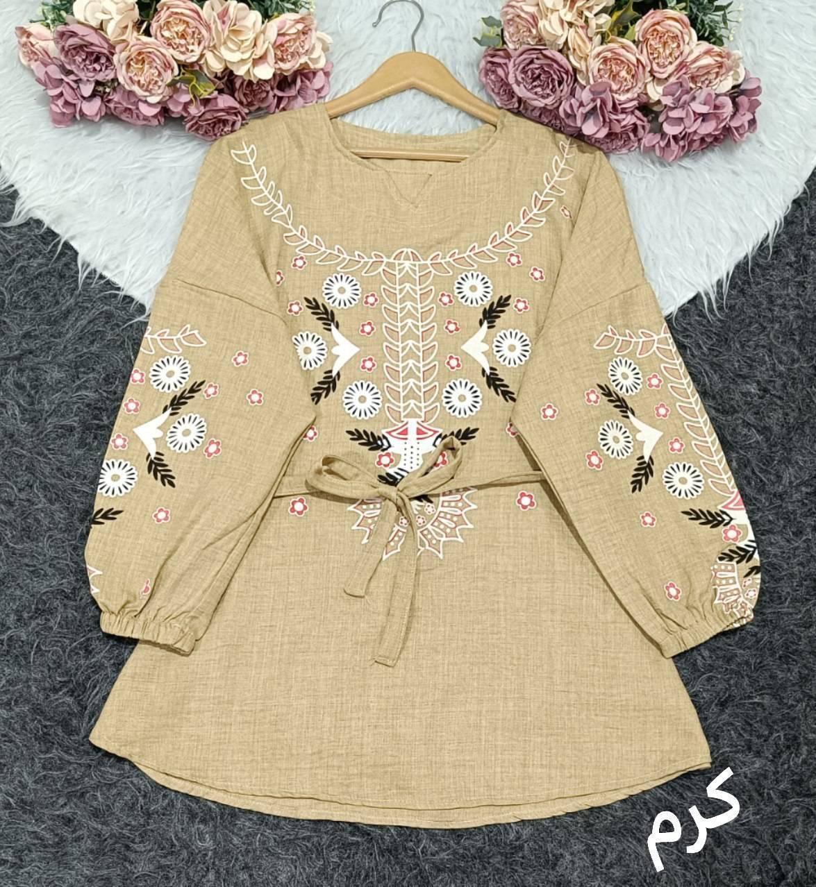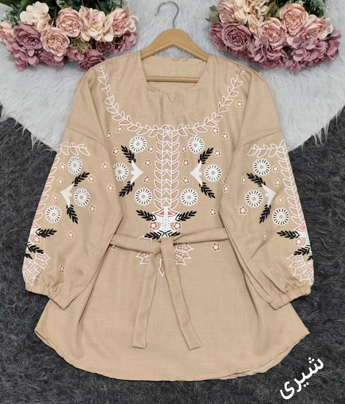 یه لباس خاص برای خانم های خاص ✨ یه تونیک زیبا با گلدوزیهای چاپی ظریف و رنگی که هم شیکه هم دلبر مناسب مهمونی، تولد و استایلهای خاص 💕 تنخور عالی، پارچه لطیف و کیفیت دوخت بالا