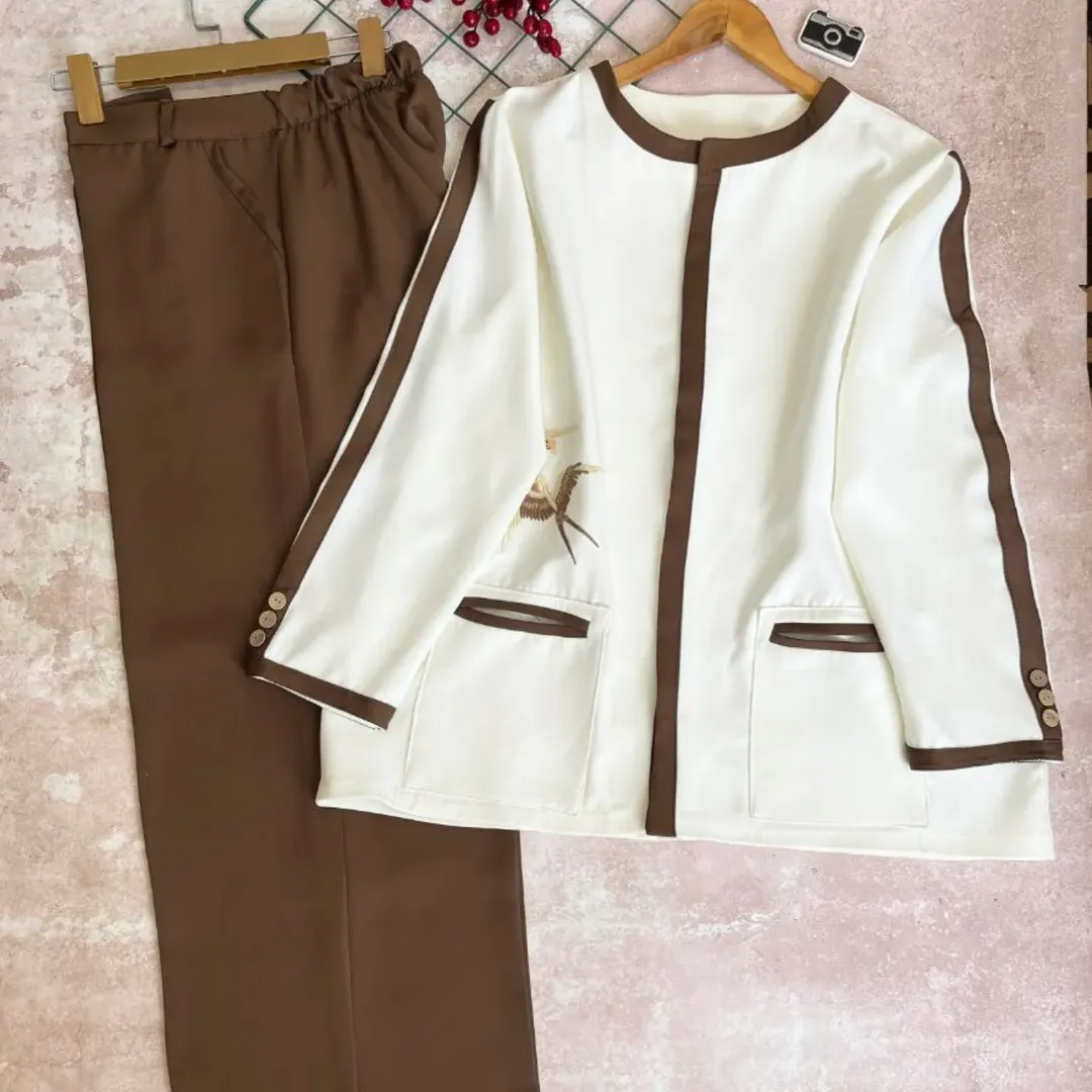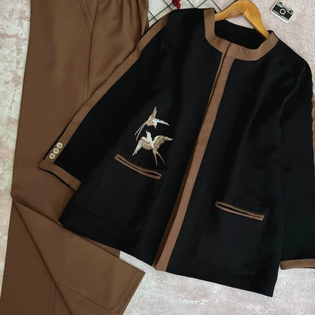 کت وشلوار شیک وباکیفیت باگلدوزی زیبای پرستو که زیباییشو دوچندان کرده. کت لایی کوبی شده و شلوار بگ خوش ایسته. پارچه خیییلی کم کشسانی داره، ابرفت و رنگدهی نداره. جیبهای کت کاربردی، شلوار زیپ و دکمه داره و پشت کمرش کش خورده ک سایزش تنظیم بشه.