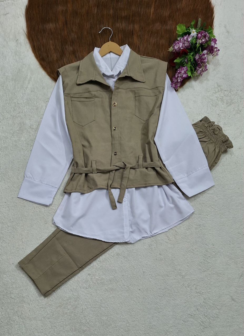 یه ست جذاب و پرطرفدار🥰 با این جلیقه شلوار دیگه دغدغه ست کردن نداری😍 سه تیکه بسیار کاربردی و راحت ؛ کاملا شیک و بروز😘