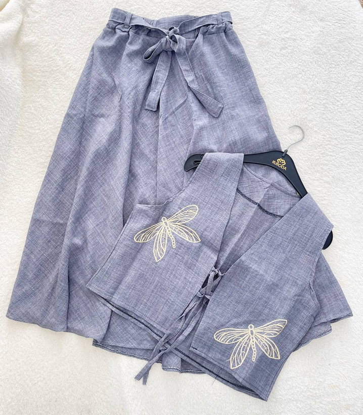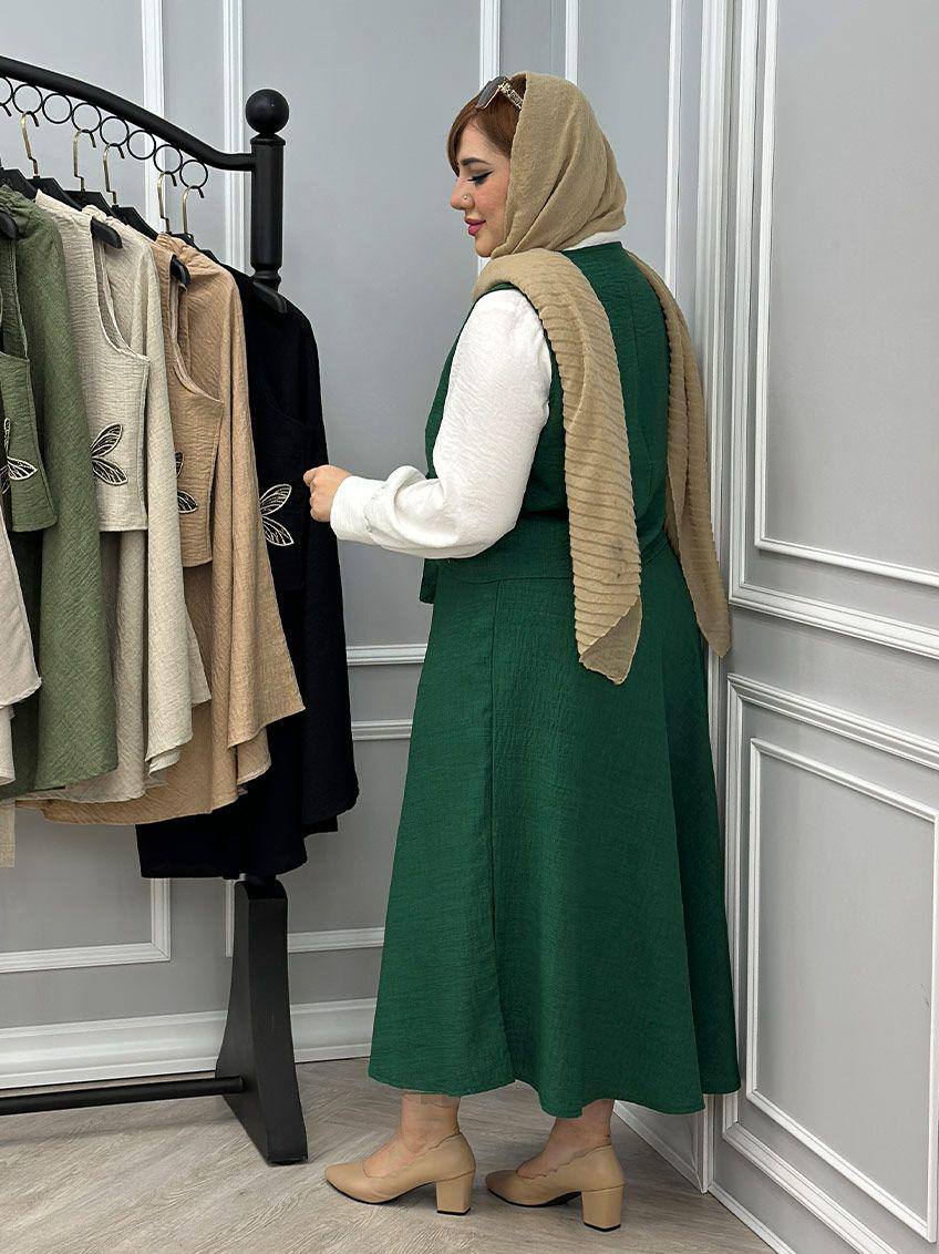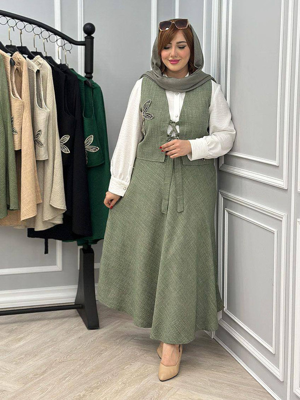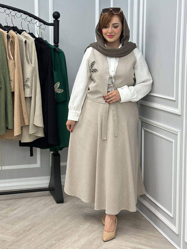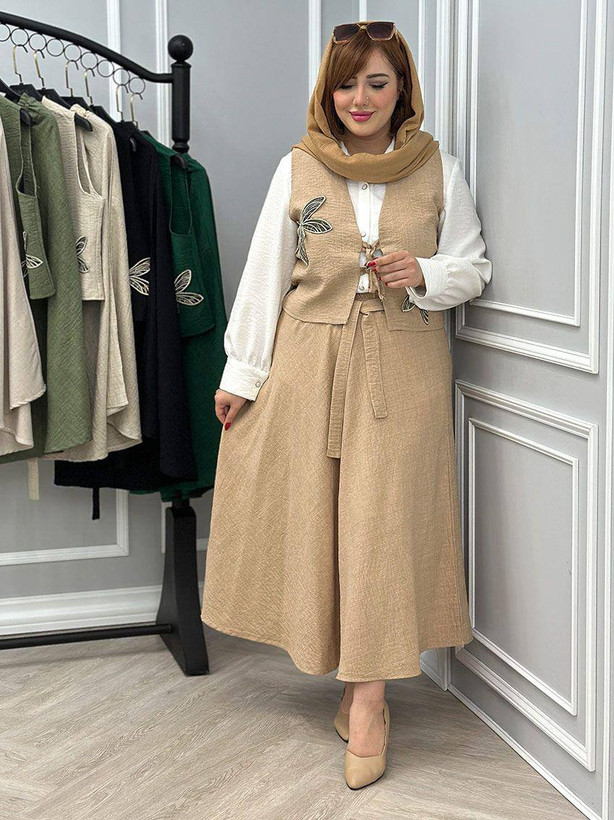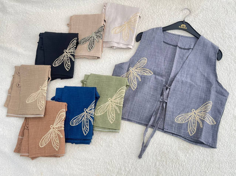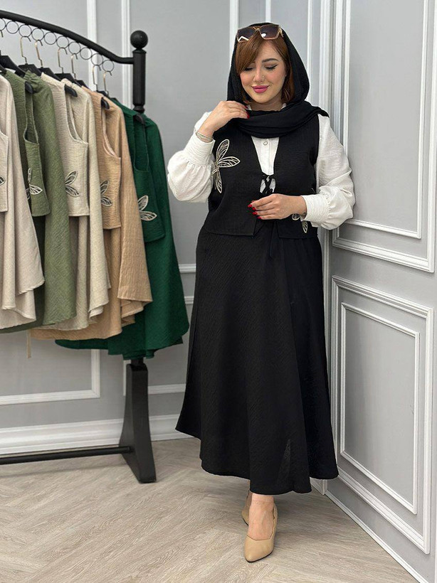 ✅فری از 36 تا 46 - قد جلیقه حدود 49 - دورسینه حدود 108 - قد دامن حدود 88 - کمرکشی و تا حدود 100 کشسانی دارد ✅طرح پروانه گلدوزی میباشد