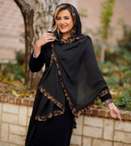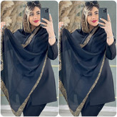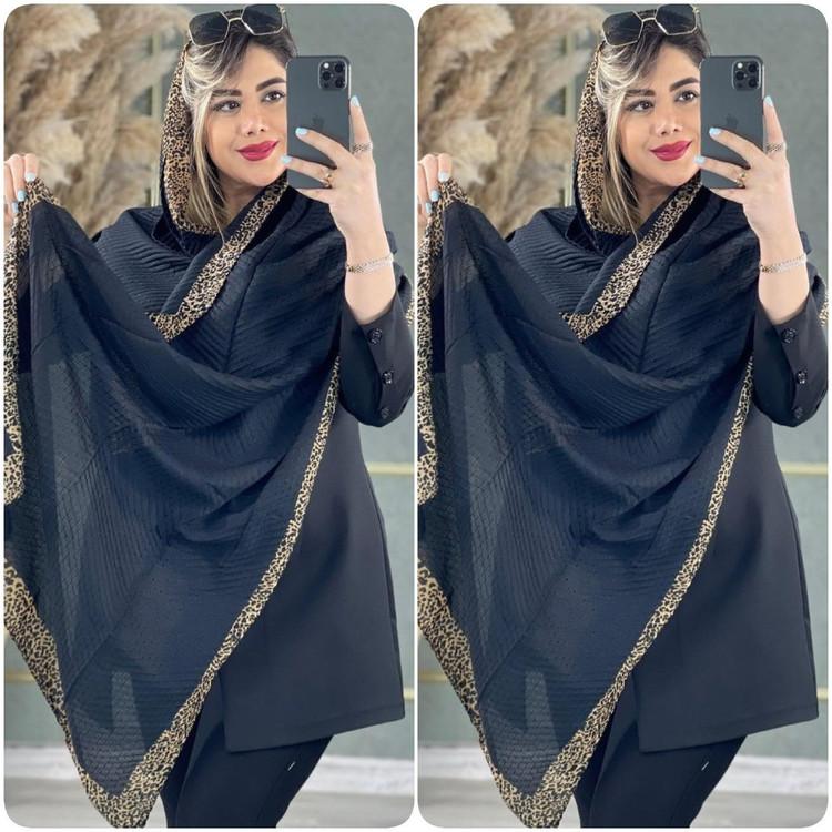 شال حاشیه پلنگی مشکی با جنس پلیسه ریز باکیفیت، خوشفرم و مناسب استایلهای شیک و مجلسی