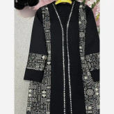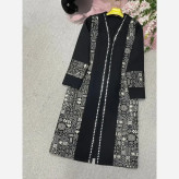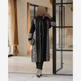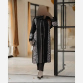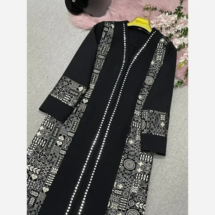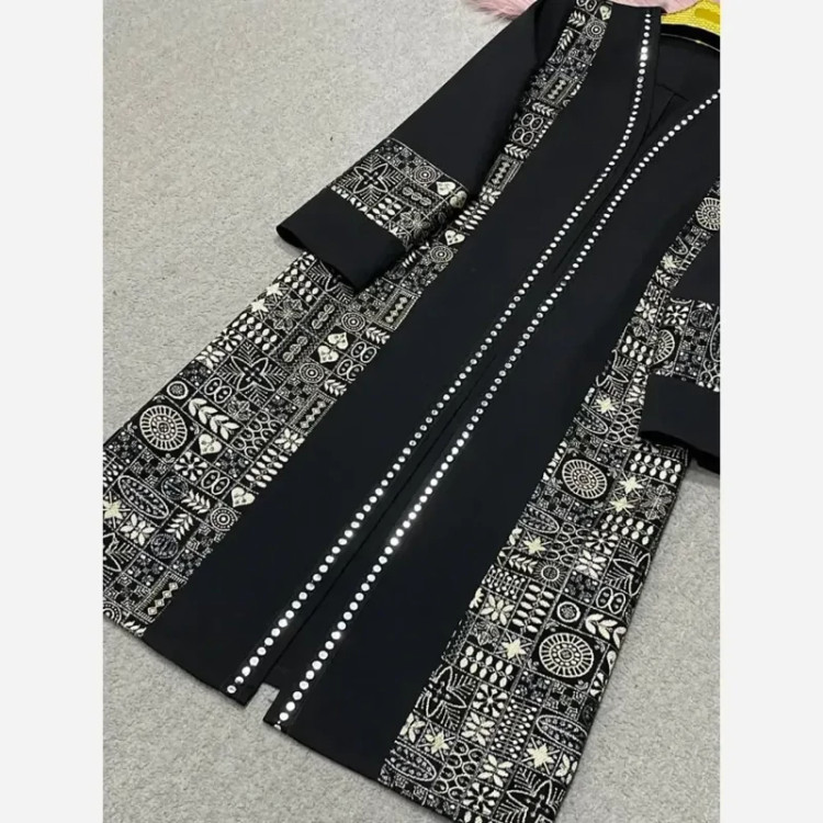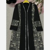 مانتو مزونی اطلس مشکی زنانه طرح دار سایزبزرگ و معمولی قد110