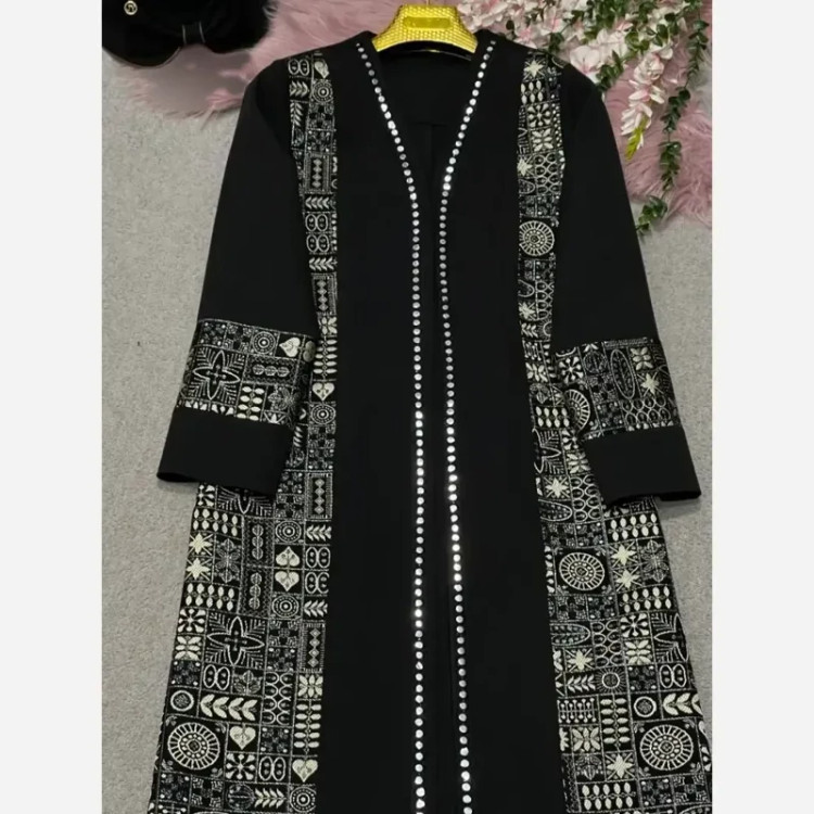 مانتو مزونی اطلس مشکی، با طراحی شیک و کیفیت بالا، انتخابی ایده آل برای تکمیل استایل شما در مناسبت های مختلف و استفاده روزمره است.