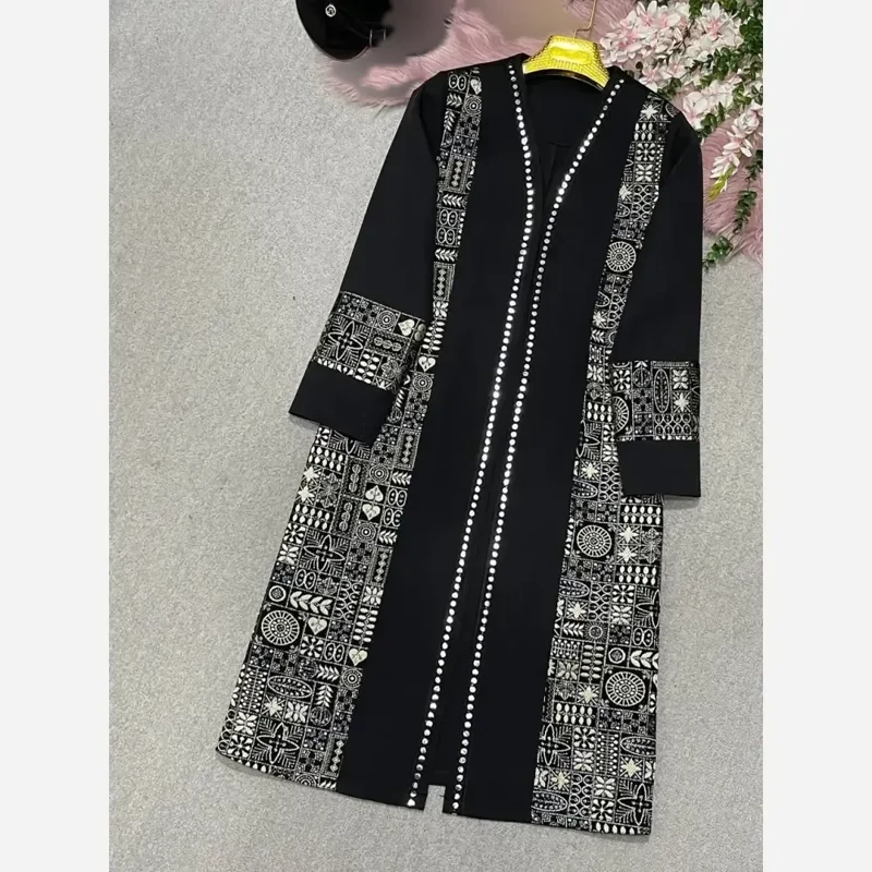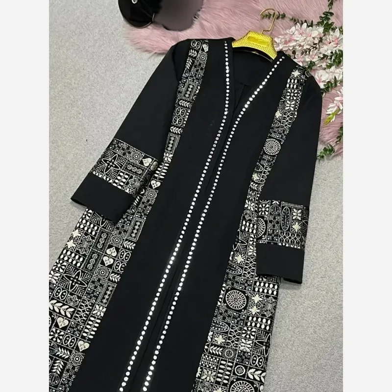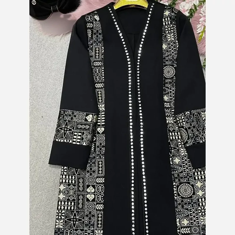 مانتو مزونی اطلس مشکی، با طراحی شیک و کیفیت بالا، انتخابی ایده آل برای تکمیل استایل شما در مناسبت های مختلف و استفاده روزمره است.