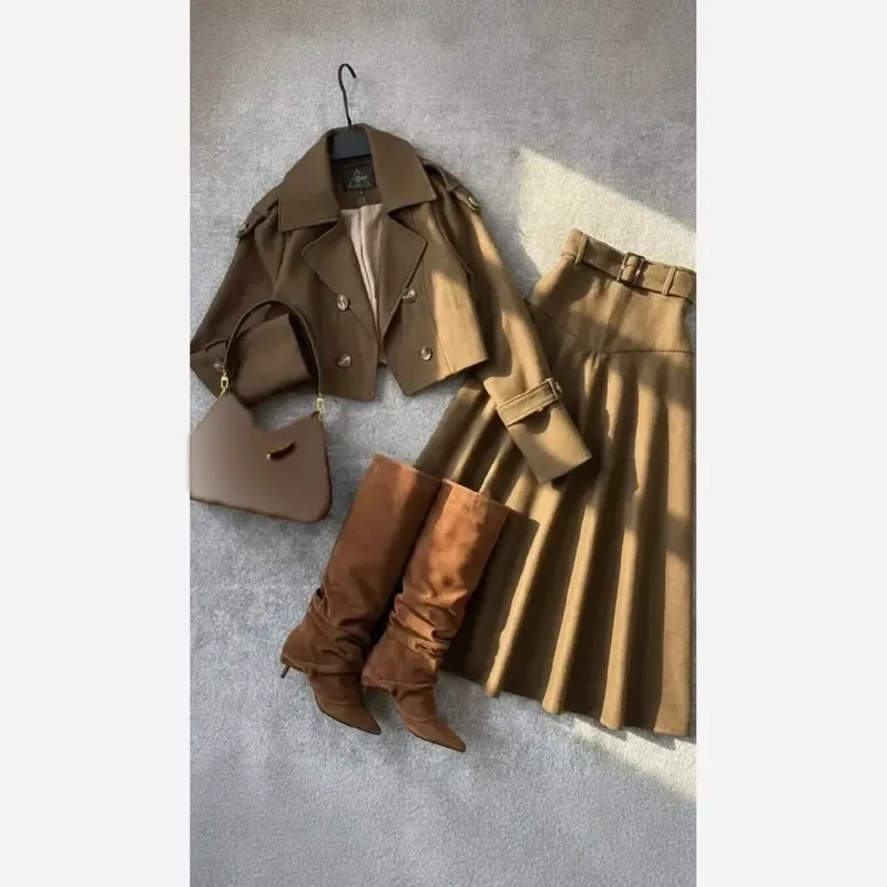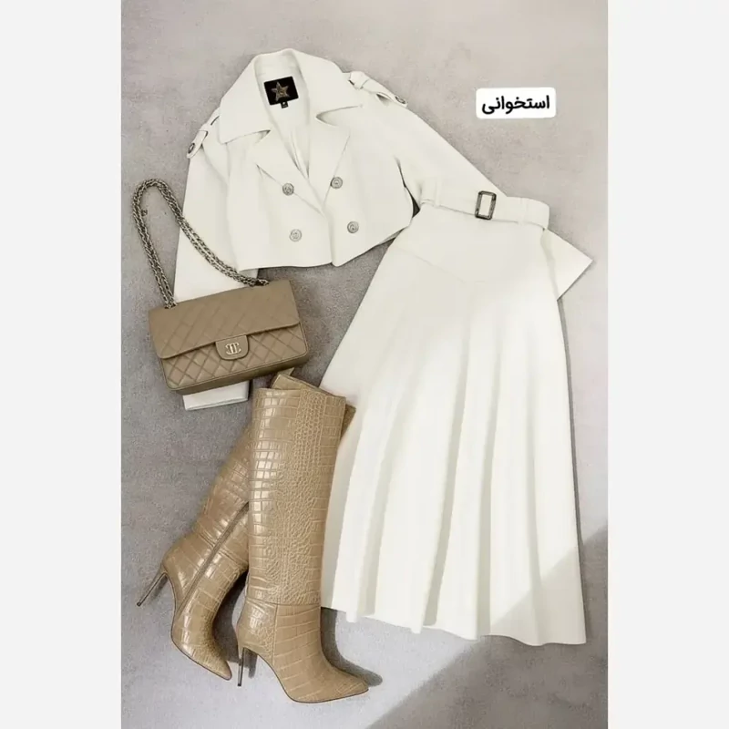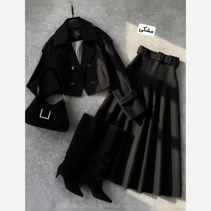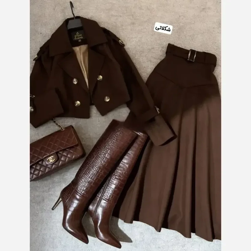 **ست کت و دامن زنانه کتان بهاره آستر دار طرح وانیل**
