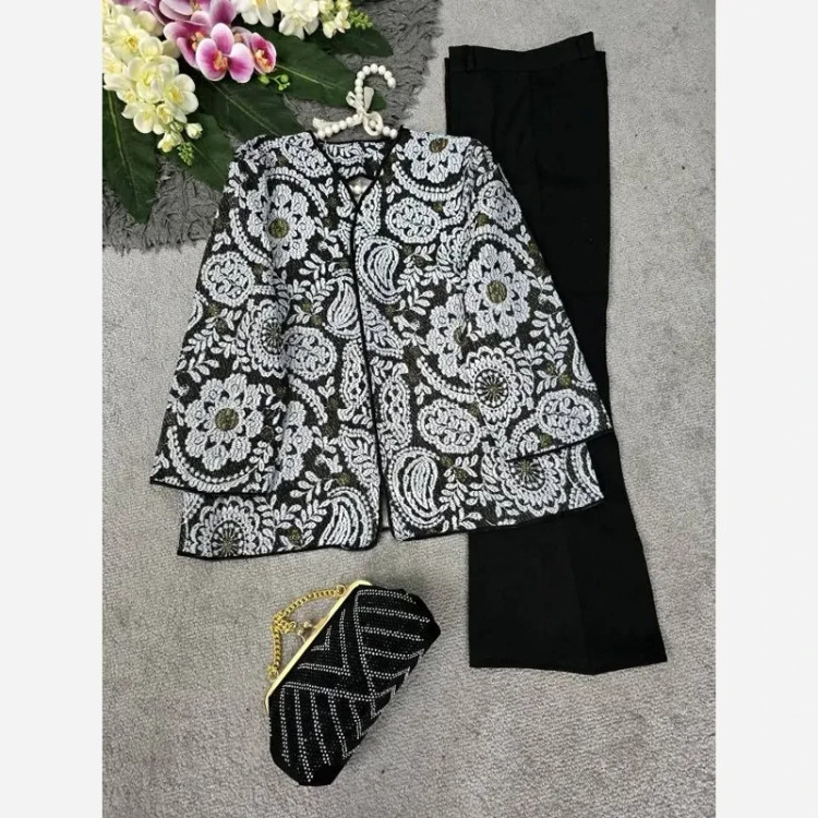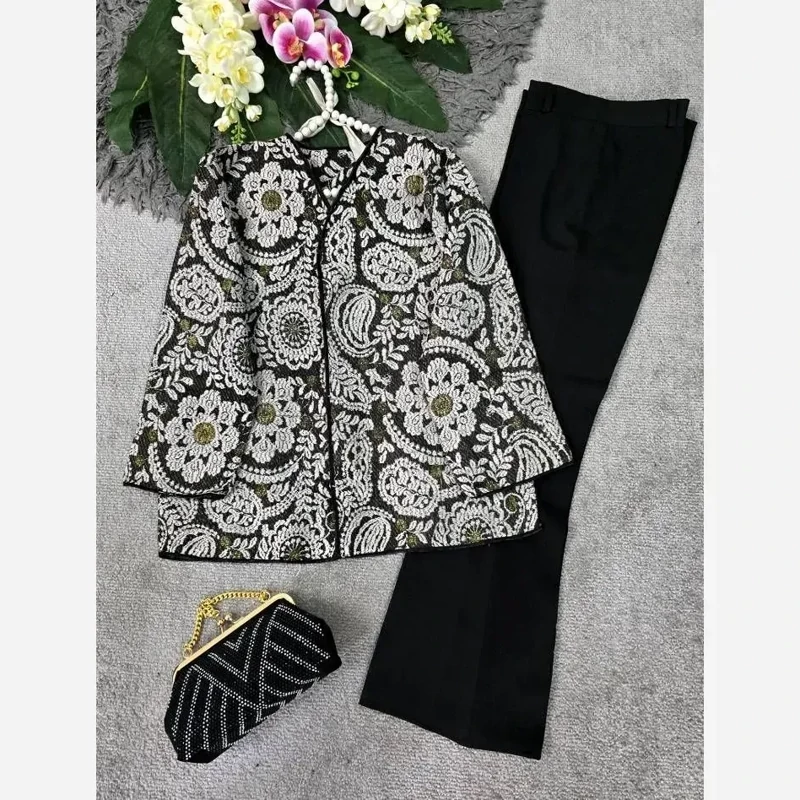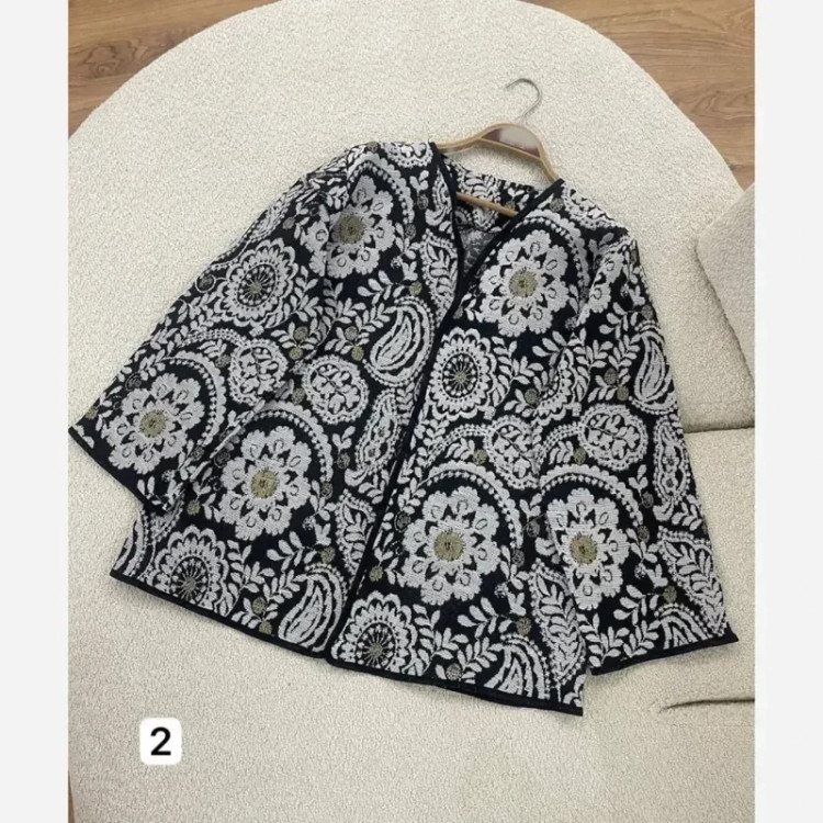 کت زنانه تافته سوزن دوزی پریسا فری سایز مجلسی طرح دار شیک