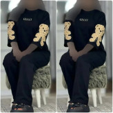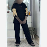 ست بلوز و شلوار نخی زنانه طرح خرس گلدوزی شده مدل بیکران فری سایز مشکی