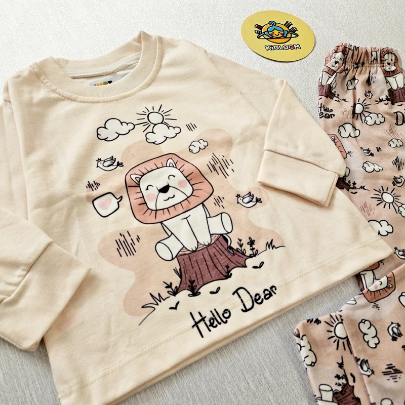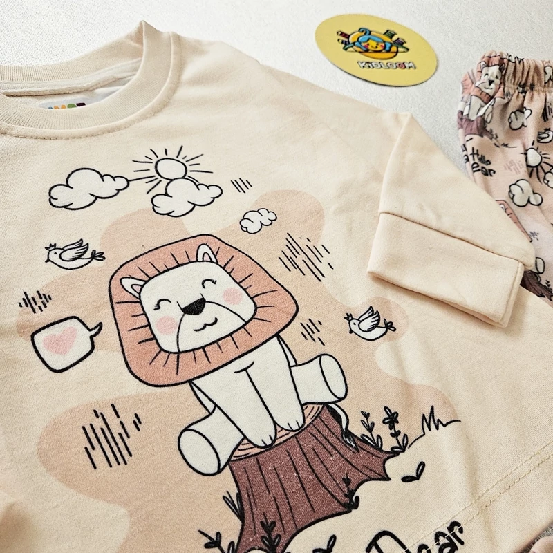 این ست راحتی با طرح جذاب شیر و ابر، انتخابی ایده آل برای لباس خواب و راحتی کودکان شماست.