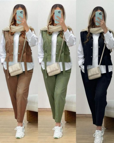 ست سه تکه مانتو ، شلوار و جلیقه سایزبندی ۳۸_۴۴ و ۴۶_۴۸
