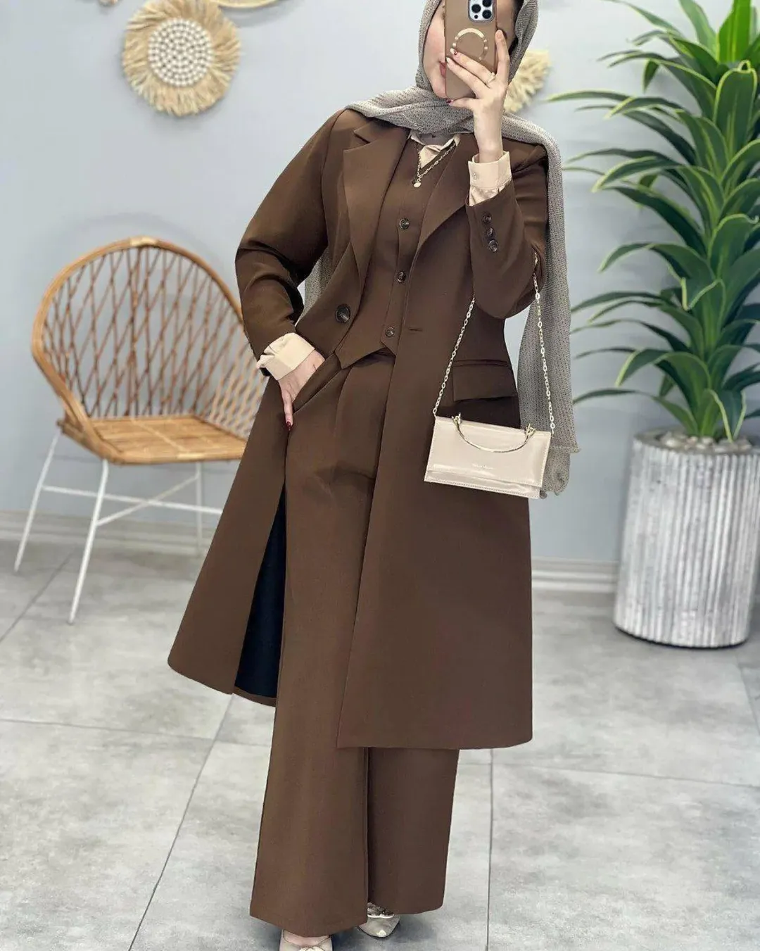 ست سه تکه مانتو ، شلوار و جلیقه سایزبندی ۳۸_۴۴ و ۴۶_۴۸
