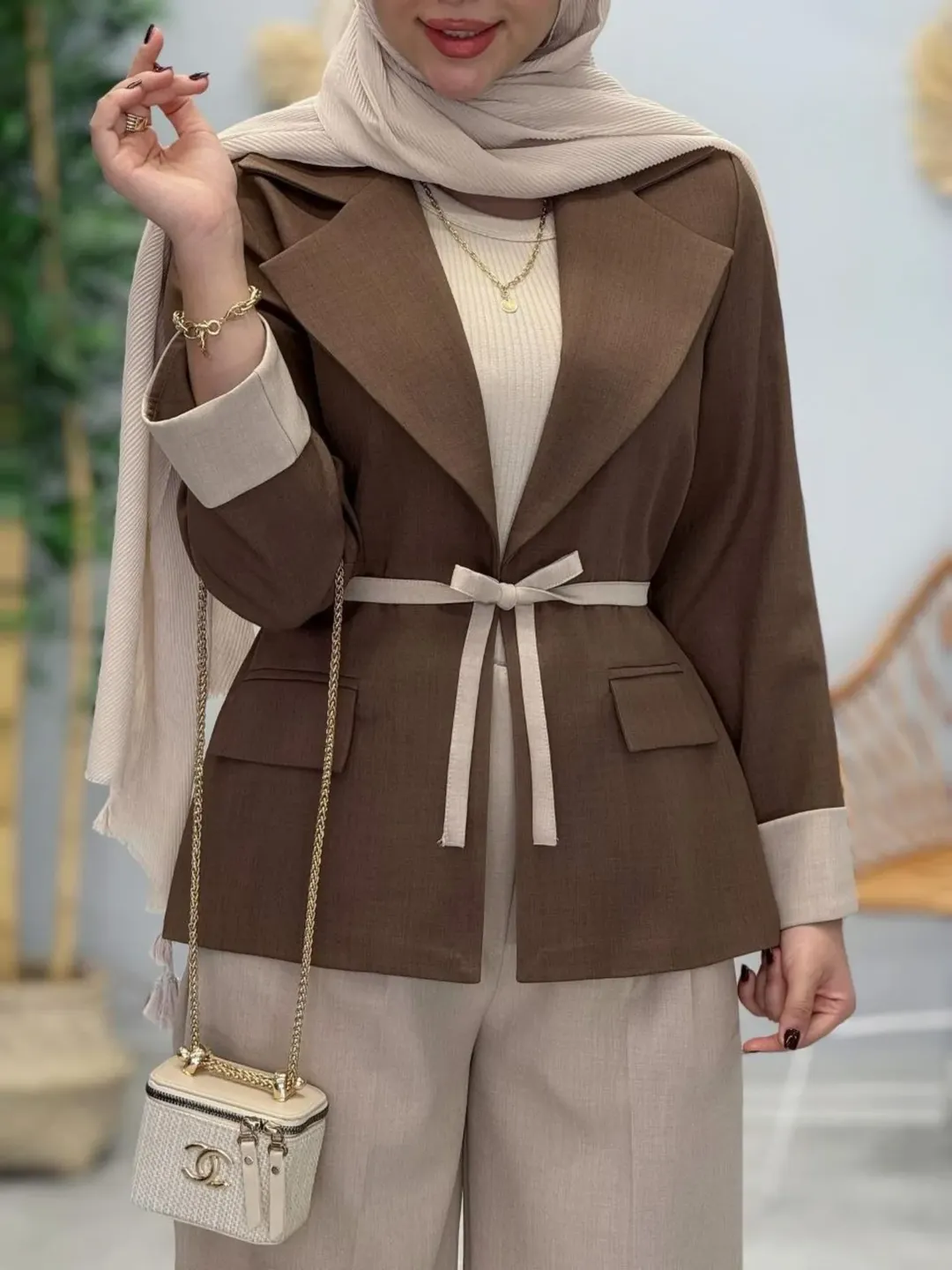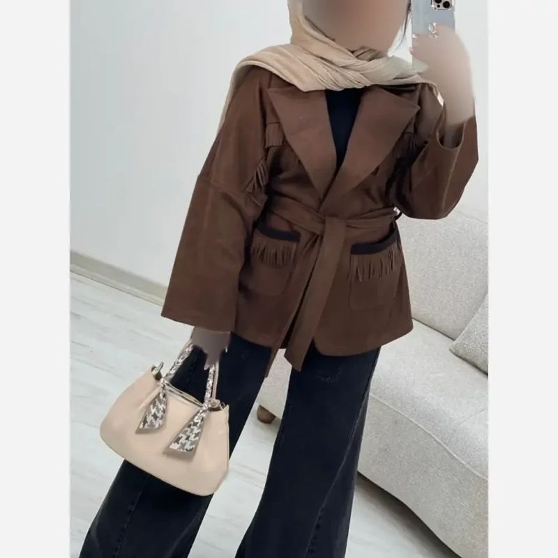 پالتو سوییت زنانه کابویی قهوهای فری سایز تا 46 زنانه ش