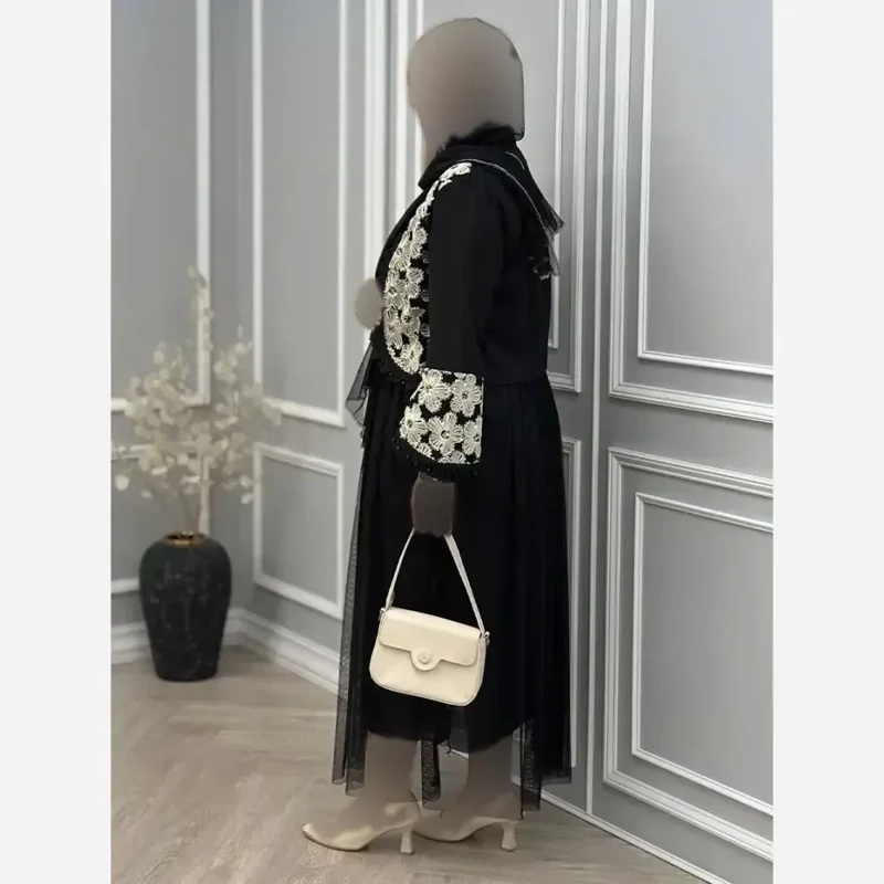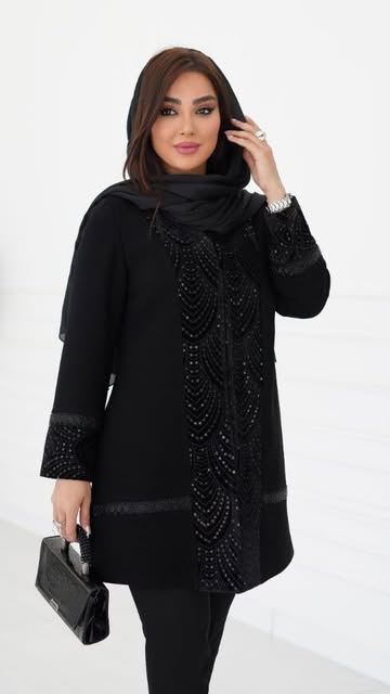 مانتو زنانه مجلسی مدل یکتا مشکی جنس مازراتی فری سایز 36 تا 46