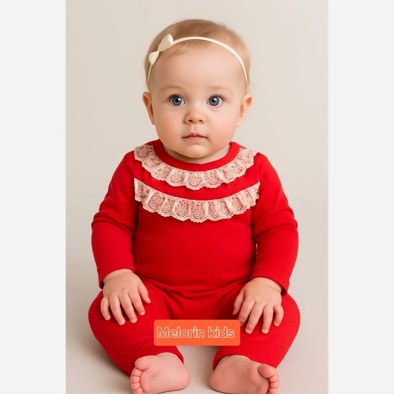 سرهمی نوزادی گیپور دار طرح دار مناسب 6 تا 24 ماه جنس پنبه دورس