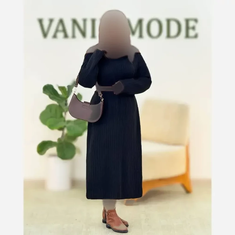 کفتان بافت زنانه یقه اسکی قد بلند فری سایز شیک و مجلسی