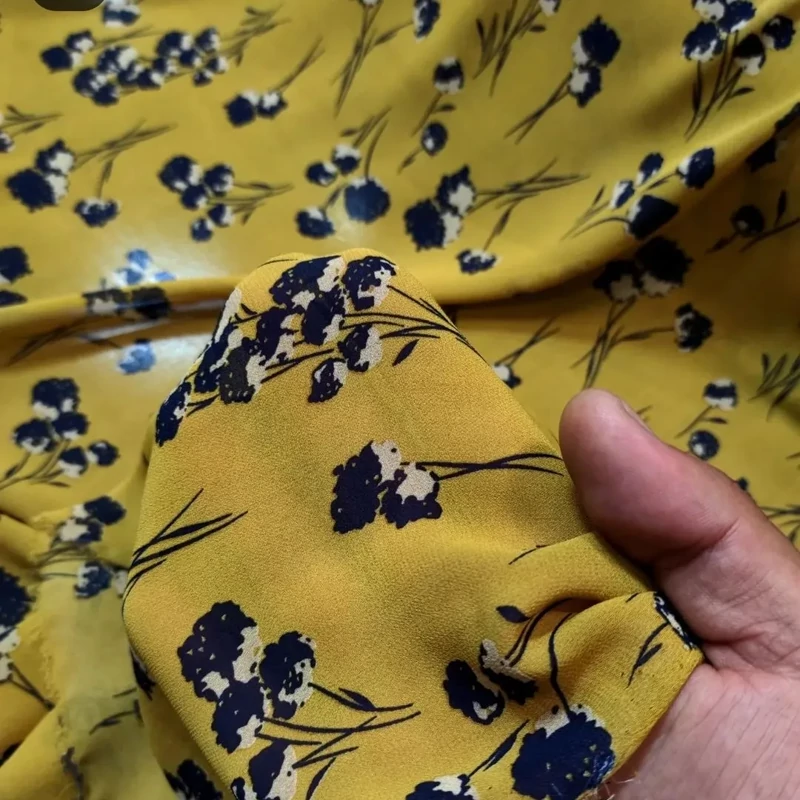 شال حریر شیفون هندی گلدار طرح دار زرد اخرایی وارداتی اعلا