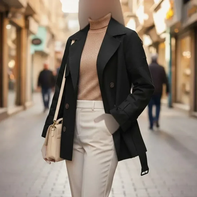کت ترنچ کوتاه زنانه جنس کتان آستردار فری سایز تا 46 مناسب استایل روزمره و مجلسی